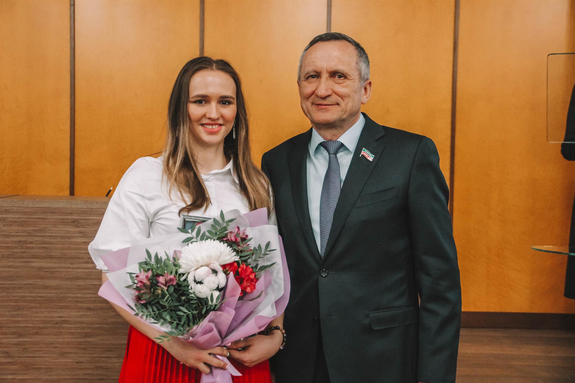 На заседании также поздравили финалистов конкурса «Лучший молодой преподаватель КГЭУ-2021». Диплом о присвоении титула «Творческая личность» вручили преподавателю кафедры «Физическое воспитание» Диляре Башировой. Диплом о присвоении титула «Мастер слова» получил ассистент кафедры «Тепловые электрические станции» Булат Гильфанов. Дипломом за титул «Преподаватель-наставник» наградили доцента кафедры «Философия и медиакоммуникации» Марину Жаркову. За титул «Верность науке» чествовали старшего преподавателя кафедры «Информатика и информационно-управляющие системы» Марию Надеждину.