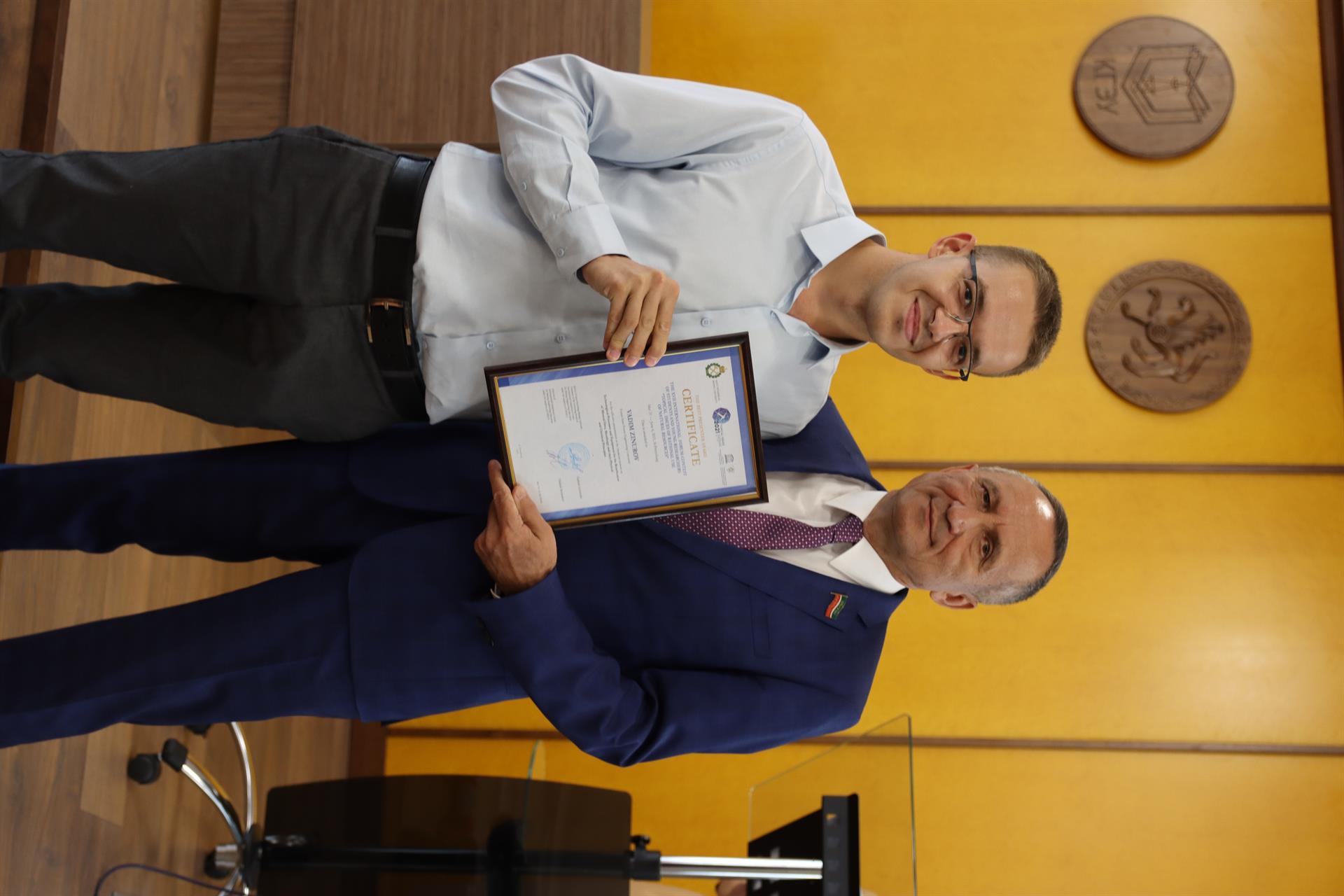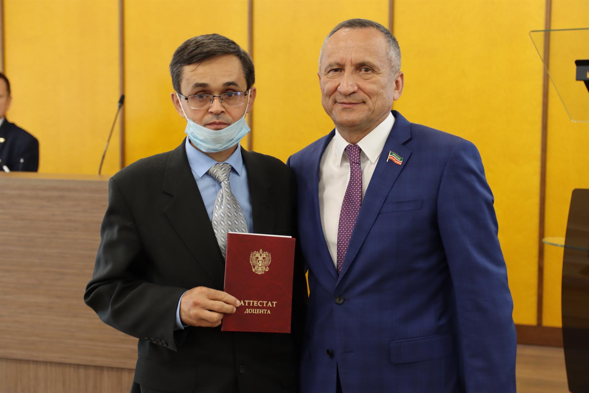 Аттестаты доцента вручили кандидату экономических наук, доценту кафедры «Экономика и организация производства» Лилие Мухаметовой и доктору физико-математических наук профессору кафедры «Высшая математика» Айрату Ситдикову. Сертификатом победителя Международного форума-конкурса «Актуальные проблемы недропользования» наградили аспиранта КГЭУ Вадима Зиннурова.