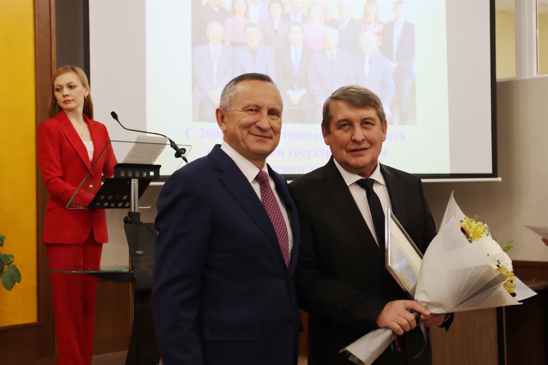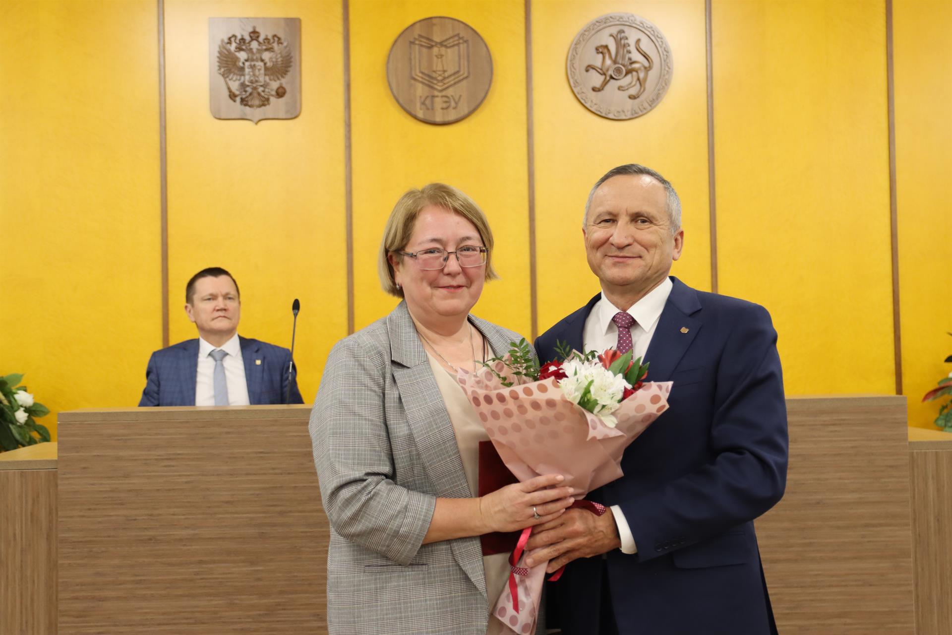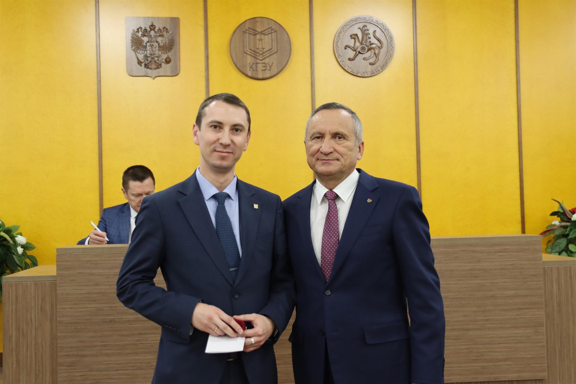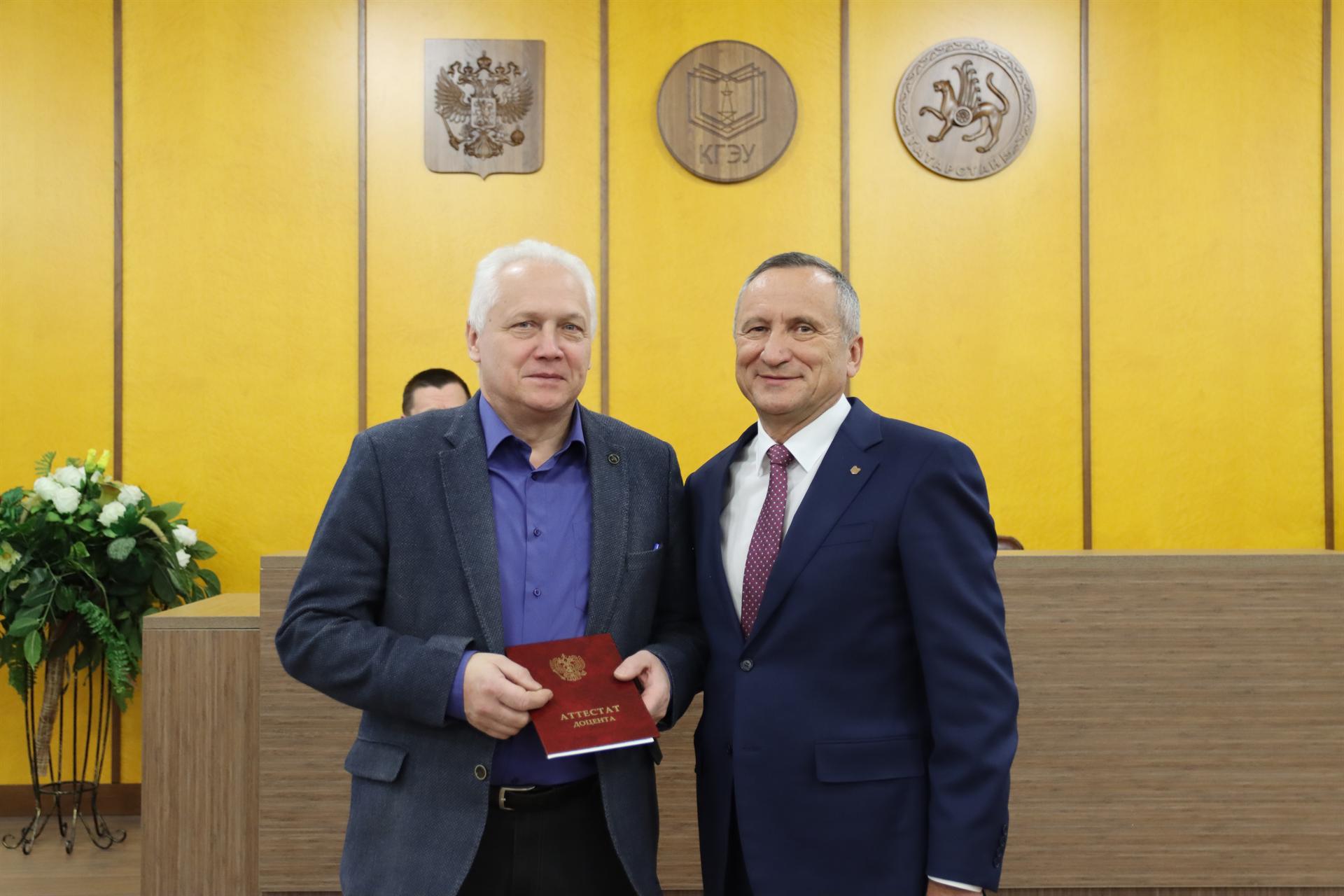 На заседании ученого Совета КГЭУ коллеги сердечно поздравили юбиляров – кандидата технических наук, завкафедрой «Релейная защита и автоматизация элекроэнергетических систем» Дамира Губаева и доктора технических наук, профессора кафедры «Приборостроение и мехатроника» Владимира Корнилова.