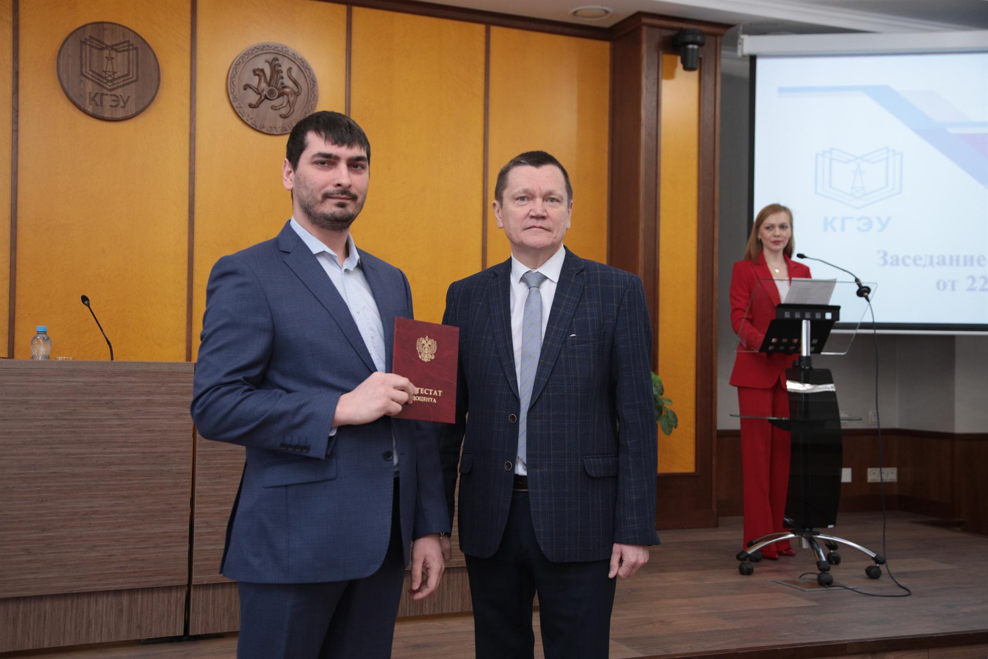 Диплом доктора технических наук вручили профессору кафедры «Электрические станции им. В.К.Шибанова» Георгию Вагапову. Диплом кандидата технических наук получила Нурия Айкенова (научный руководитель, доктор технических наук, профессор – Лариса Николаева). Аттестаты доцента по специальности вручили заведующему кафедрой «Электрооборудование и электрохозяйство предприятий, организаций и учреждений», кандидату технических наук Рамилу Гибадуллину и доценту кафедры «Релейная защита и автоматизация элекроэнергетических систем», кандидату технических наук Юрию Писковацкому.