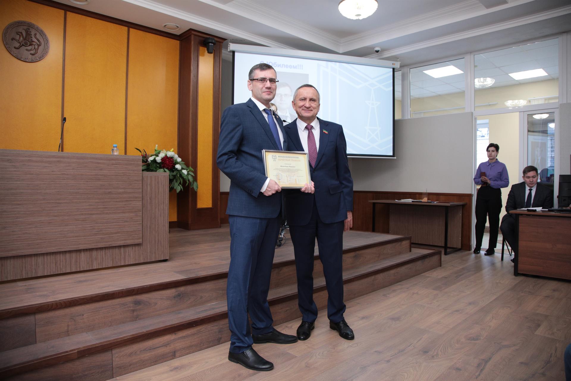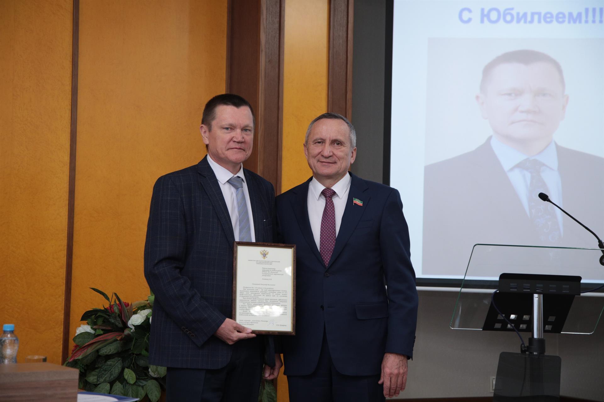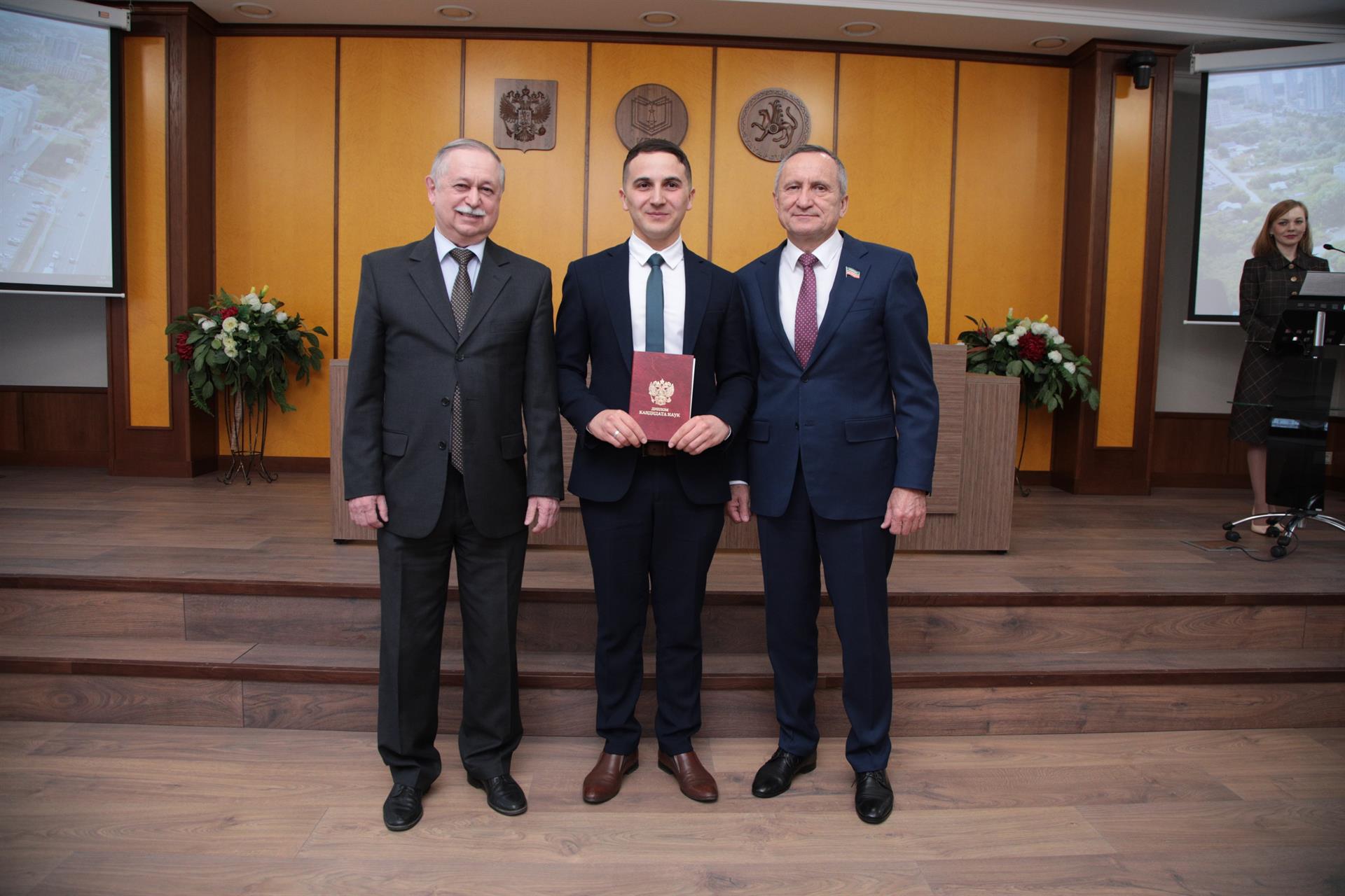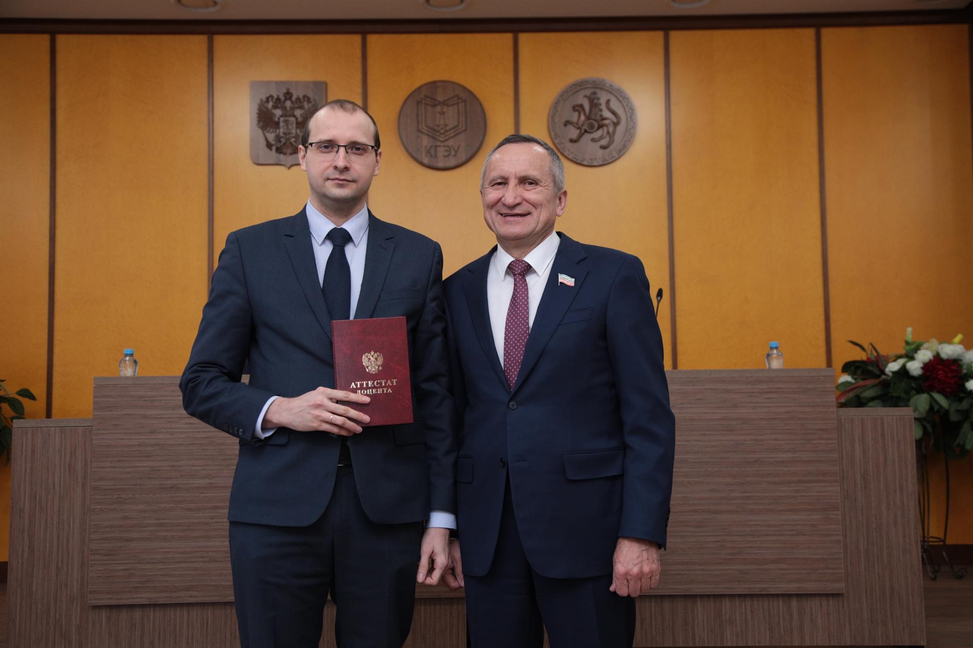 Теплые слова поздравлений и пожеланий члены ученого совета высказали в адрес юбиляров – первого проректора-проректора по учебной работе Александра Леонтьева и замдиректора оргдепартамента КГЭУ Марата Шагеева. Руслану Шакирову вручили диплом кандидата технических наук (научный руководитель - доктор технических наук, профессор Камиль Гильфанов). Аттестаты доцентов по специальности получили доцент кафедры «Экономика и организация производства», кандидат экономических наук Регина Салихова и доцент кафедры «Инженерная кибернетика», кандидат физико-математических наук Сергей Соловьев.