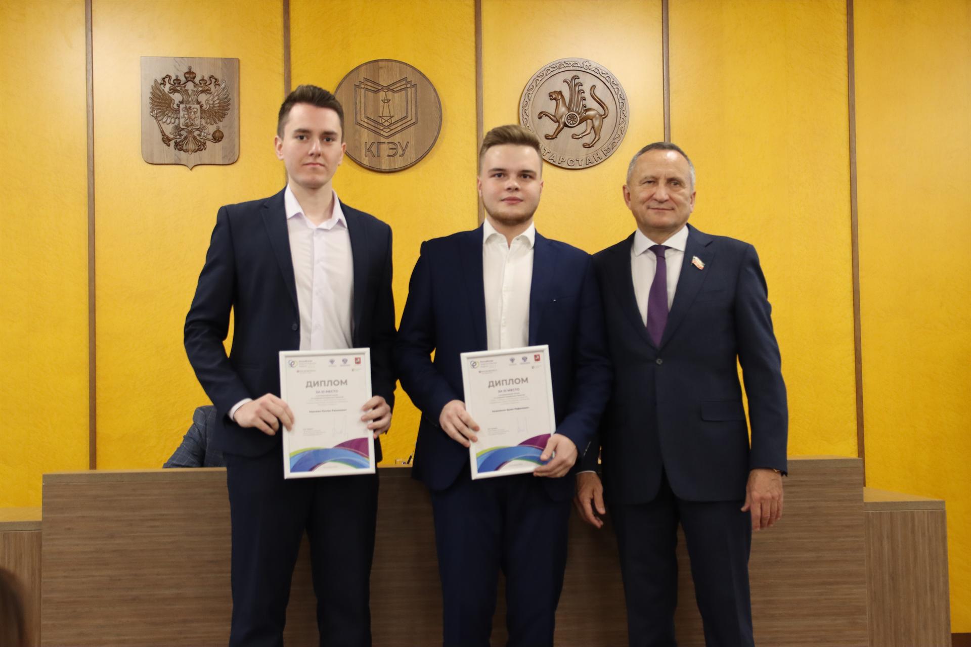 Дипломы 2 и 3 степени в конкурсе социальной экологической рекламы в номинации «Видеоролик» получили студенты кафедры «Инженерная экология и безопасность труда» Роман Замалетдинов и Данил Пулатов. Студента КГЭУ Андрея Анисимова поздравили с личной победой в номинации «Лучший эколог» III Международного строительного чемпионата (научный руководитель - доктор технических наук, профессор Лариса Николаева). Слова благодарности прозвучали в адрес студентов, которые заняли первое место в командной номинации «Пусконаладочные работы» III Международного строительного чемпионата, – Сергея Филимонова, Кирилла Николаева (научный руководитель – кандидат технических наук, доцент кафедры «Теоретические основы электротехники» Рафаэль Аскаров), Дмитрия Банных (научный руководитель - научный руководитель доцент кафедры Электрические станции им. В.К.Шибанова Венера Булатова) и Азата Тимершина (научный руководитель - директор Института теплоэнергетики, кандидат технических наук, доцент кафедры «Промышленная теплоэнергетика и системы теплоснабжения» Сергей Гапоненко).