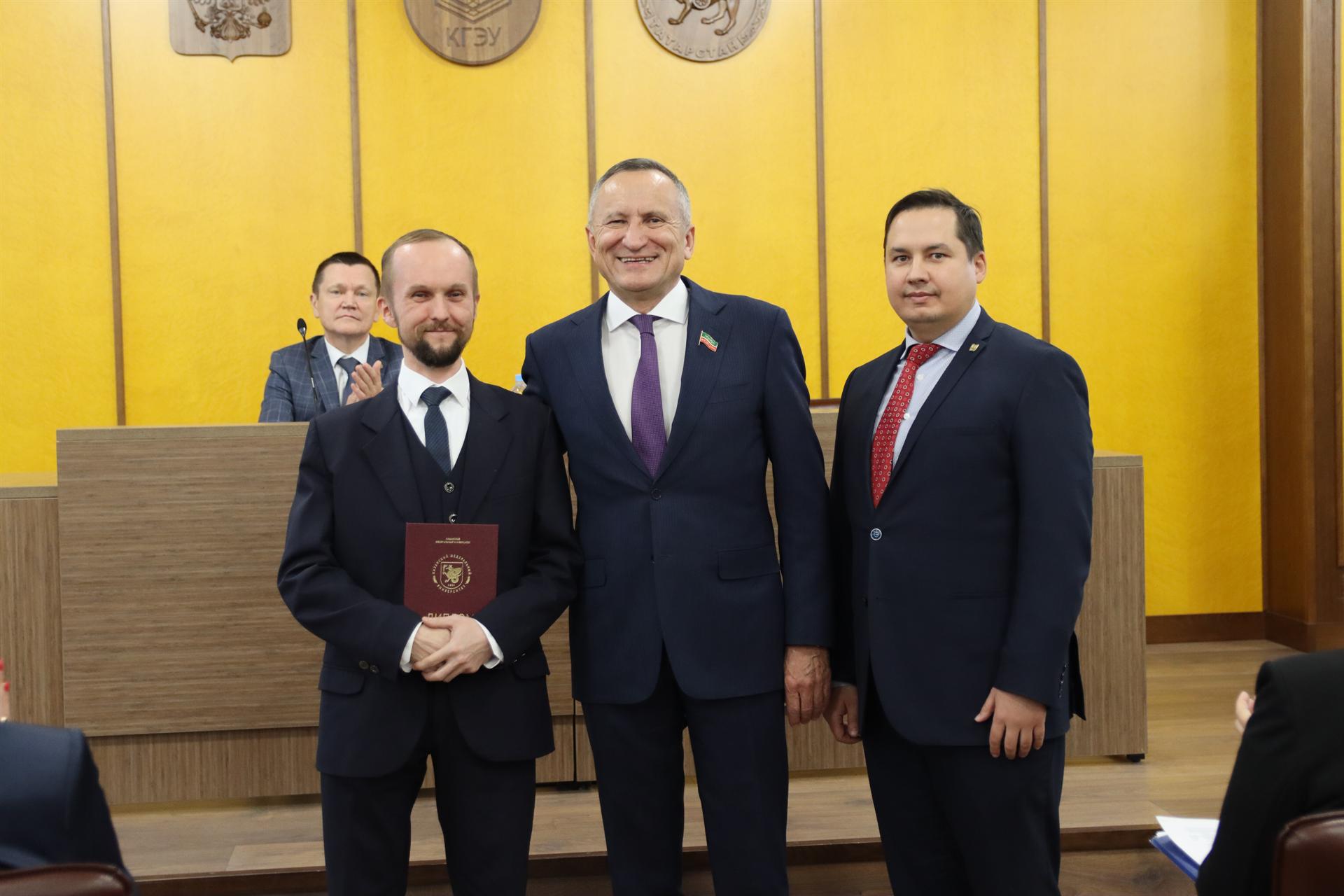 Дипломы доктора технических наук получили Дмитрий Иванов (научный консультант - доктор физико-математических наук, профессор Александр Голенищев-Кутузов) и профессор кафедры «Энергообеспечение предприятий, строительство зданий и сооружений» Олег Радайкин (научный консультант - доктор технических наук, профессор кафедры «Энергообеспечение предприятий, строительство зданий и сооружений» Линар Сабитов).