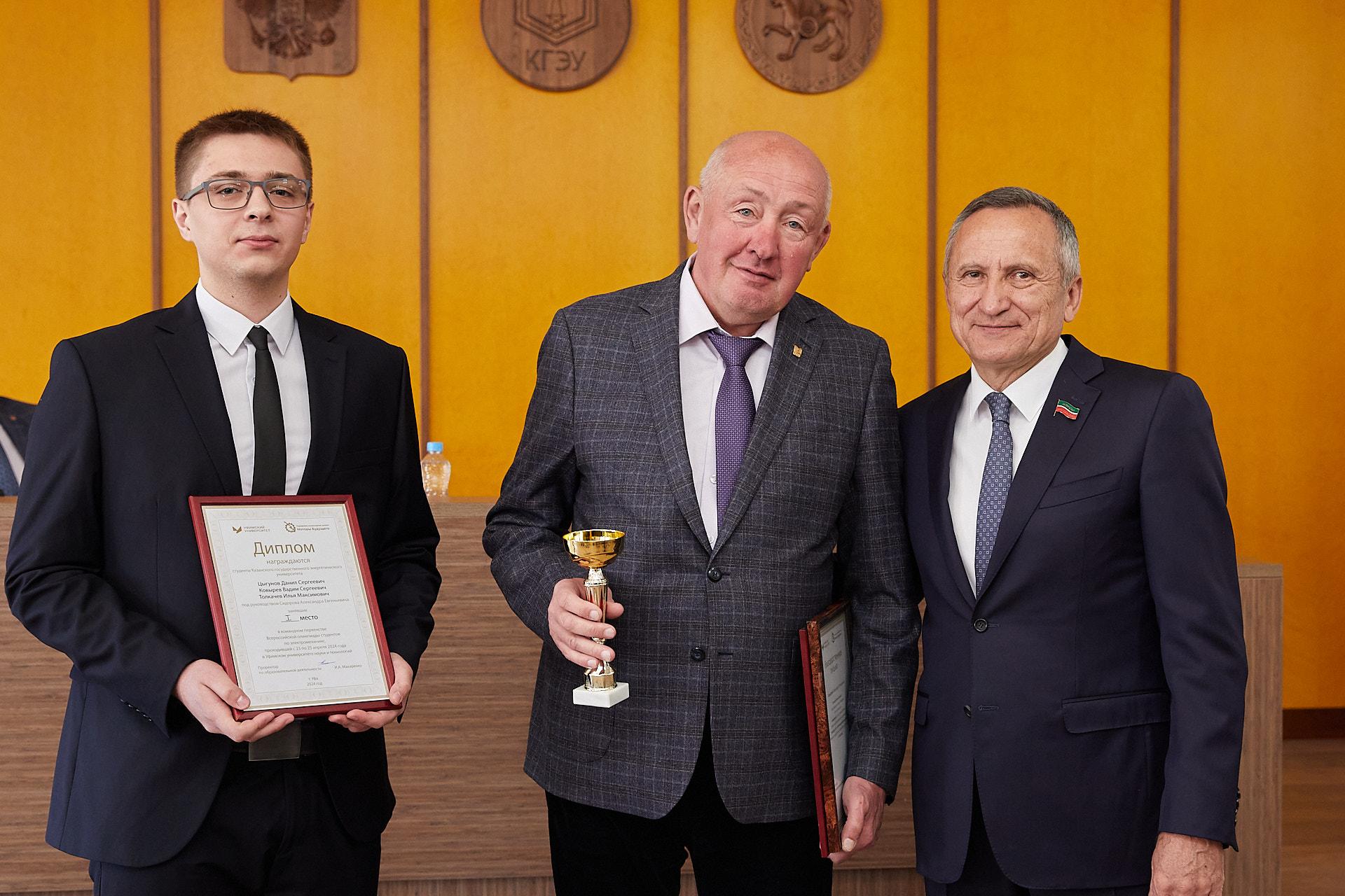 Диплом победителя в командном первенстве Всероссийской олимпиады студентов по электромеханике вручили студентам КГЭУ – Данилу Цыгунову, Вадиму Ковыреву, и Илье Толкачеву. Благодарственным письмом наградили научного консультанта, кандидата технических наук, доцента кафедры «Электрооборудование и электрохозяйство предприятий, организаций и учреждений» Александра Сидорова.