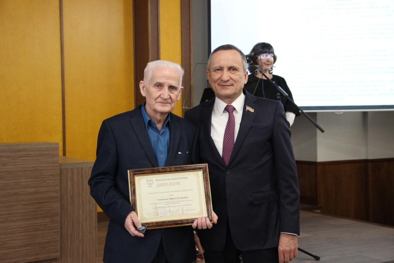 В рамках заседания Ученого совета состоялась торжественная церемония награждения. За заслуги и достижения в области науки и образования почетного звания «Заслуженный профессор КГЭУ» удостоился Рафаил Тукшаитов - профессор кафедры «Электрооборудование и электрохозяйство предприятий, организаций и учреждений».