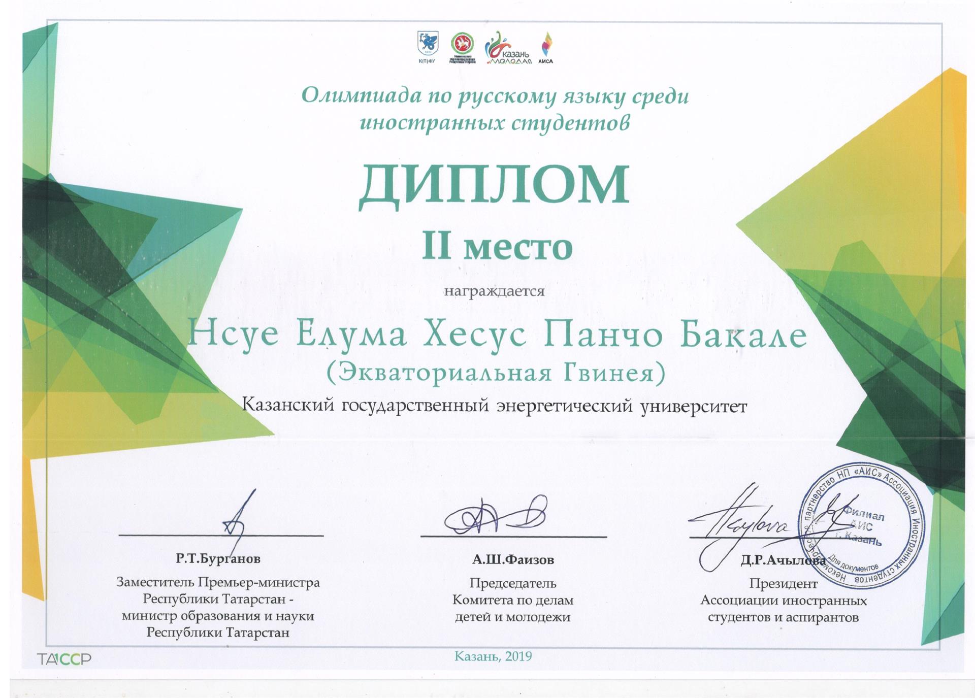 2 место в категории «3, 4 курс бакалавриат, магистратура» занял студент 1 года магистратуры  ИЦТЭ, гражданин Экваториальной Гвинеи Нсуе Елума Хесус Панчо Бакале.