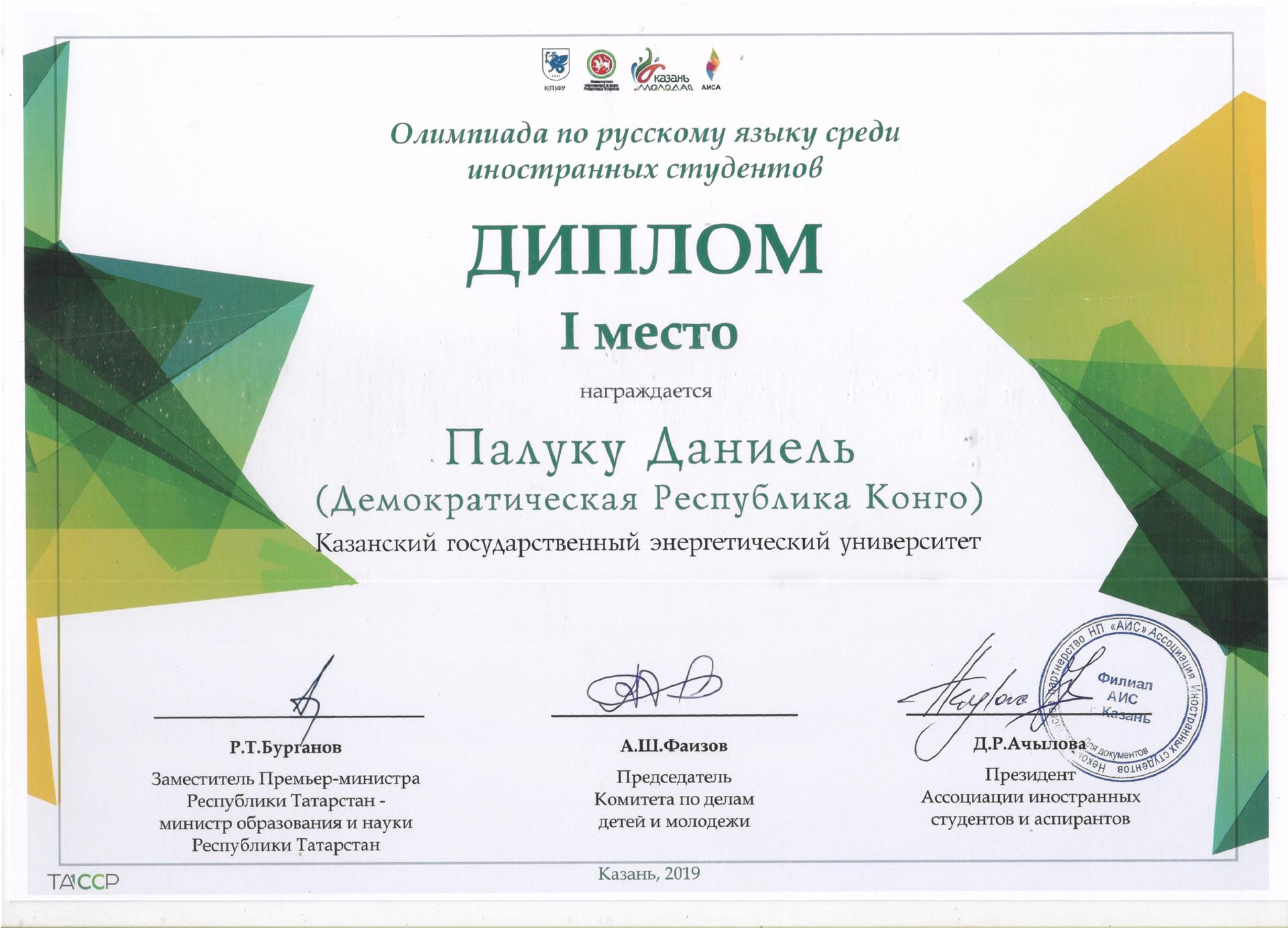 1 место в категории «1, 2 курс  Дальнее зарубежье, бакалавриат» занял студент 2 курса Института Теплоэнергетики, гражданин Демократической Республики Конго Даниэль Палуку.