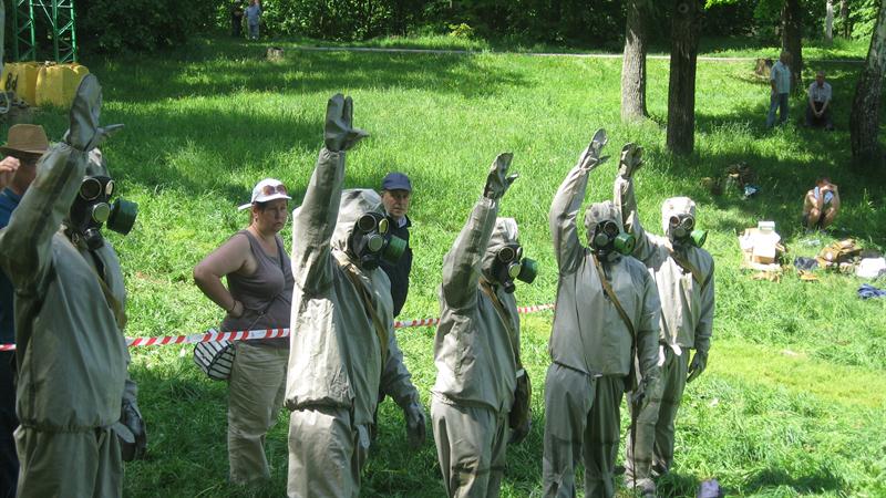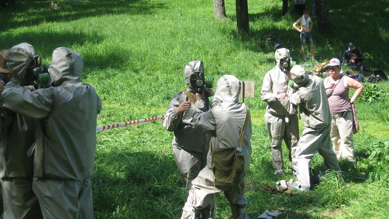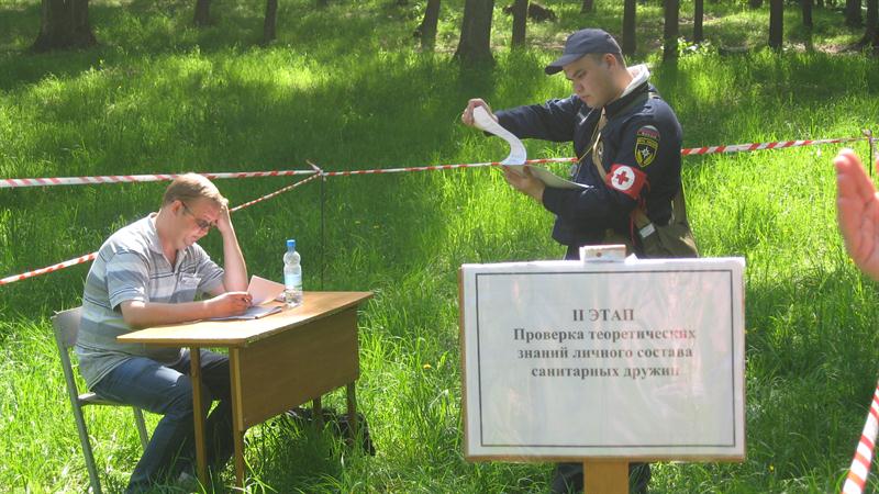 Санитарная дружина прошла этапы соревнования: проверка оснащения и умение пользоваться имуществом, работа в очагах химического поражения на площадке частичной дезактивации и частичной санитарной обработки, работа в очаге инфекционного заболевания, работа в госпитальном отделении по уходу за пораженными и больными.