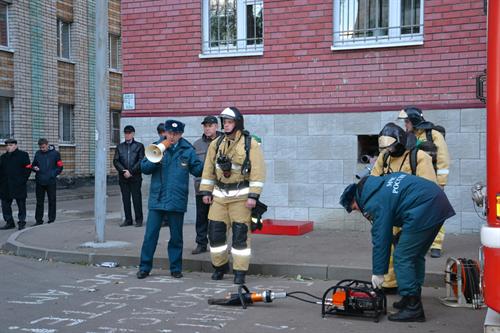 Руководитель учения председатель КЧСПБ, проректор по АХР А.Д. Зиганшин указал на четкие действия администрации и студентов при возгорании на 1-ом этаже общежития и поблагодарил личный состав ПЧ-3 Казанского гарнизона за практический показ методов и способов спасения людей из здания.