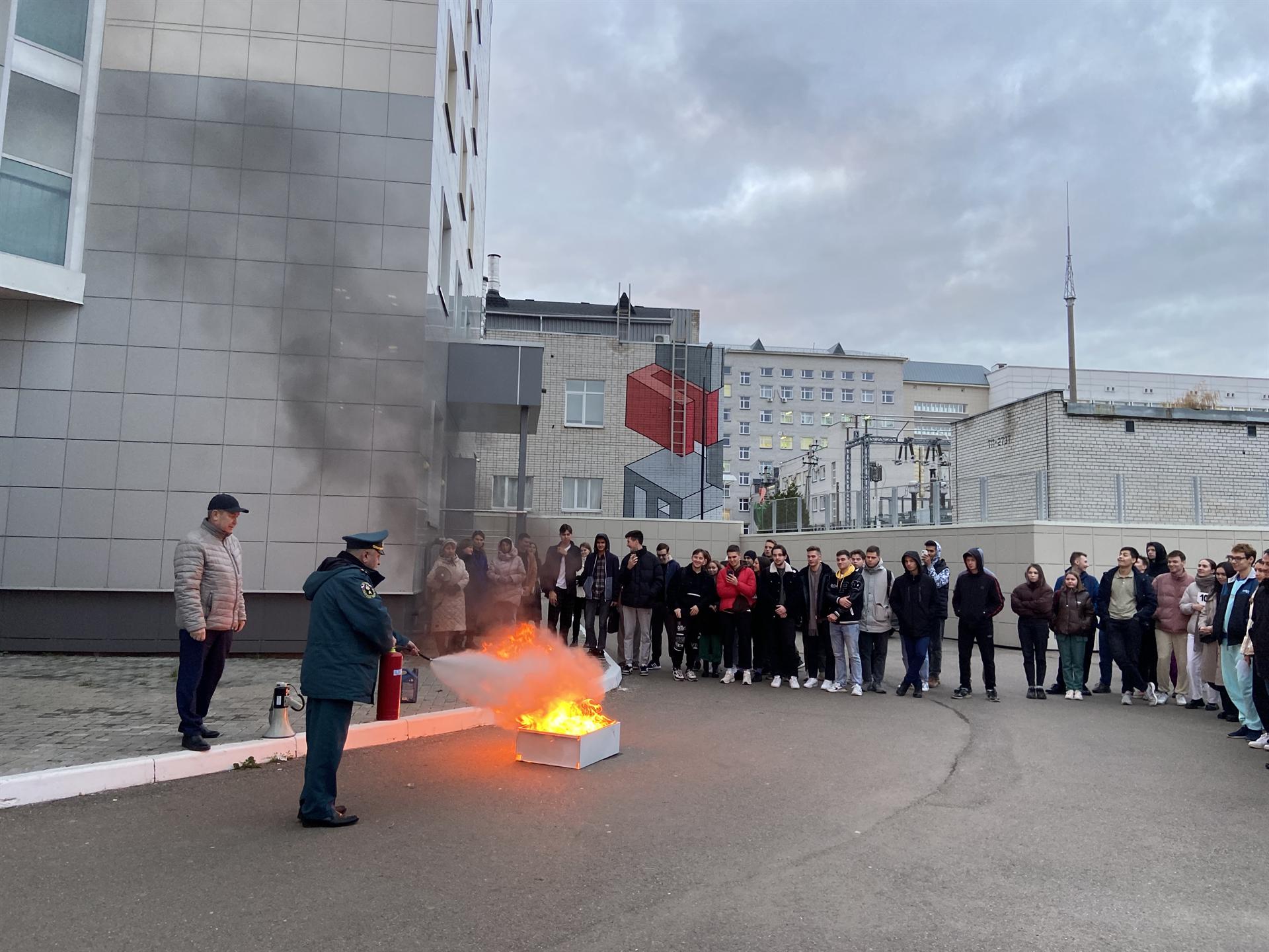 В ходе тренировки научили студентов правилам поведения при проведении эвакуации, применение огнетушителя при тушении очага возгорания.