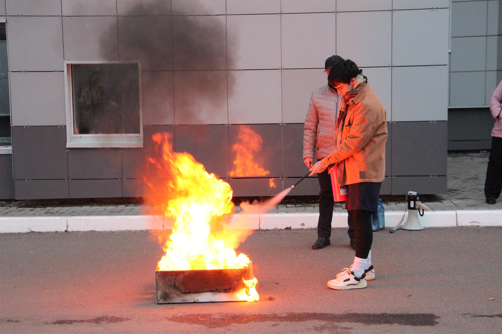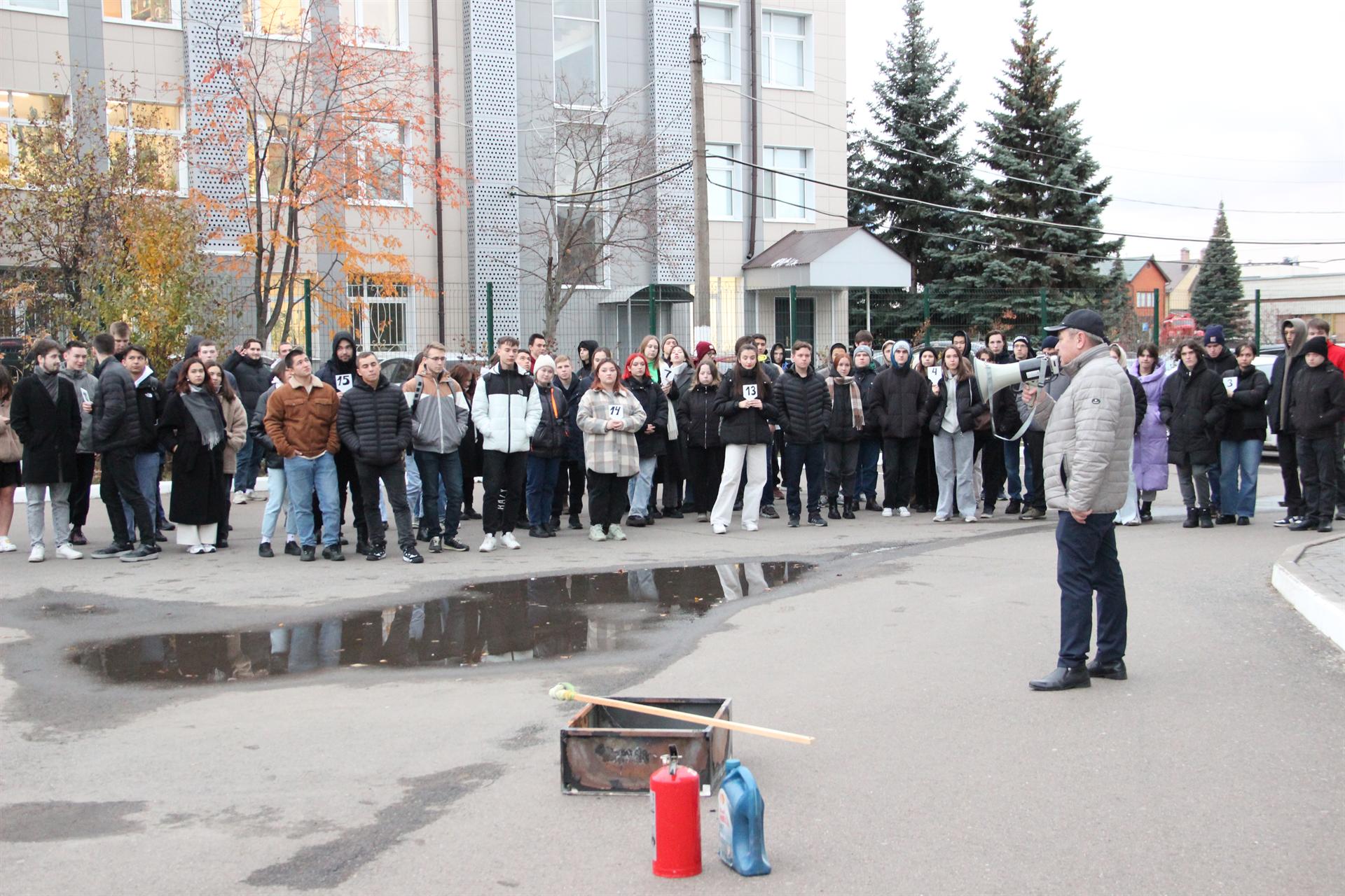 В ходе тренировки научили студентов правилам поведения при проведении эвакуации, применение огнетушителя при тушении очага возгорания.
