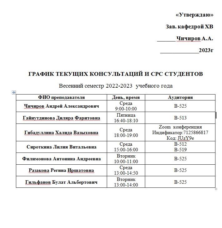 ГРАФИК ТЕКУЩИХ КОНСУЛЬТАЦИЙ И СРС СТУДЕНТОВ