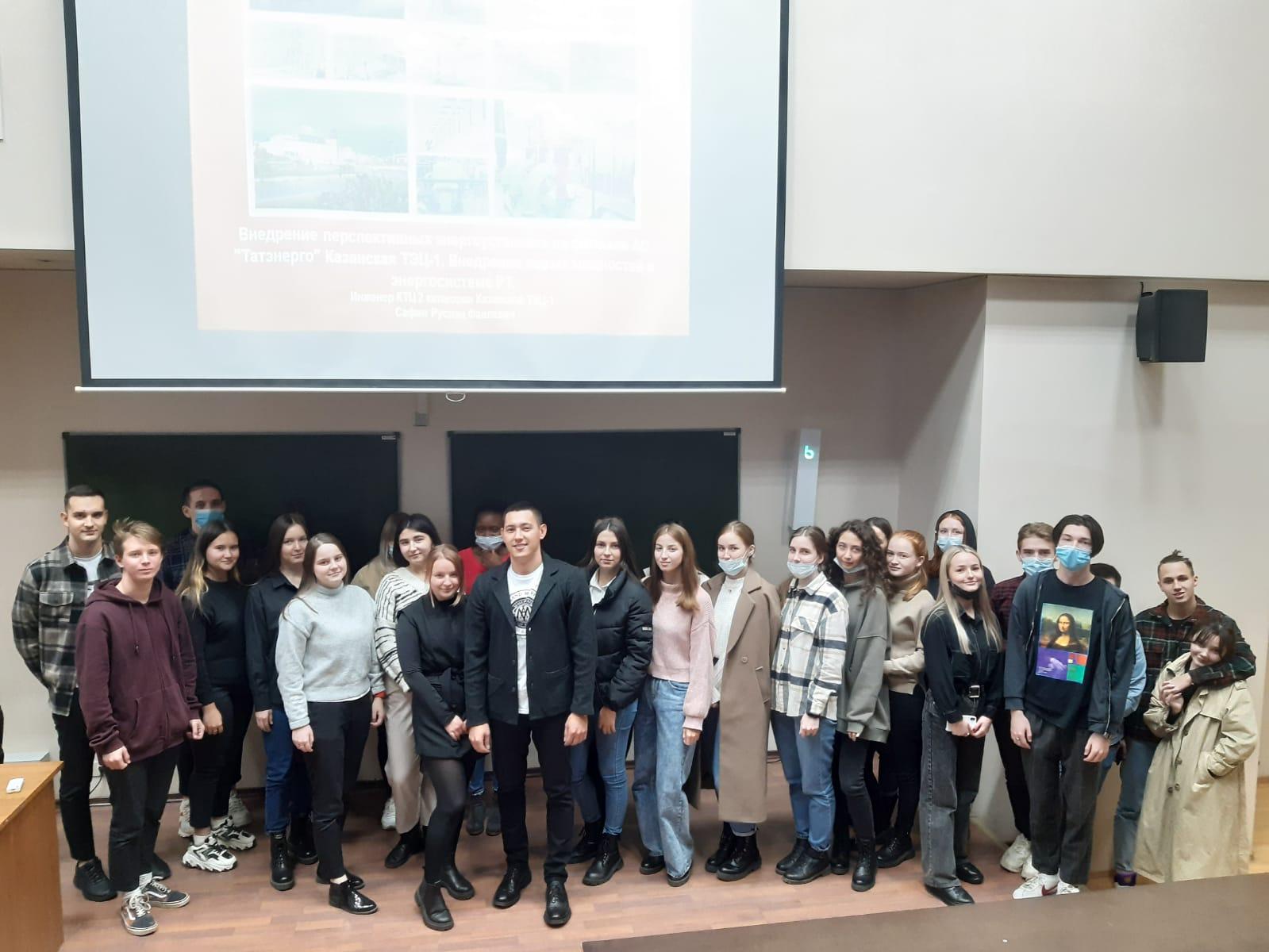 19 октября для студентов гр. ЭКП-1-19 и ЭКП-2-19 провел лекцию Сафин Руслан Фаилевич – бывший студент КГЭУ, который также являлся именным стипендиатом АО «Татэнерго», в настоящее время инженер 2 категории котлотурбинного цеха Казанской ТЭЦ-1. Лекция была посвящена внедрению перспективных энергоустановок на Казанской ТЭЦ-1 и в целом новых мощностей в энергосистеме Татарстана.