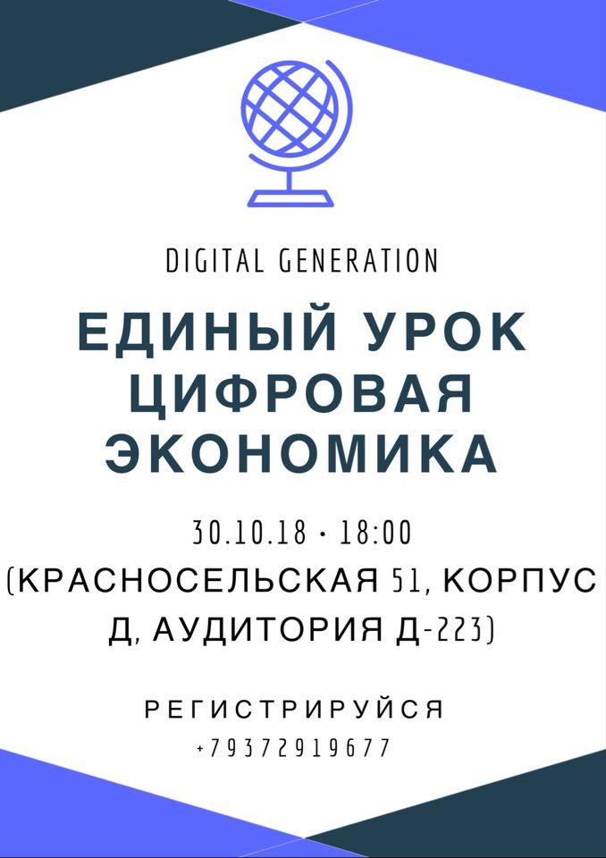 30 октября состоится Первая Всероссийская акция «Единый урок Цифровой экономики».