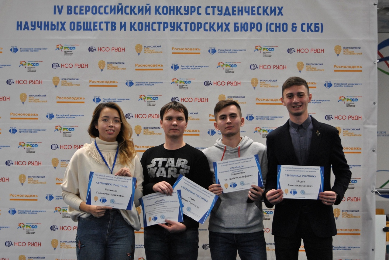 Представители нашего университета Амил Ибадов, Гульчачак Исламова, Евгений Пономарёв и Максим Уткин на Всероссийском конкурсе СНО и СКБ 2018 вернулись из Москвы не с пустыми руками.