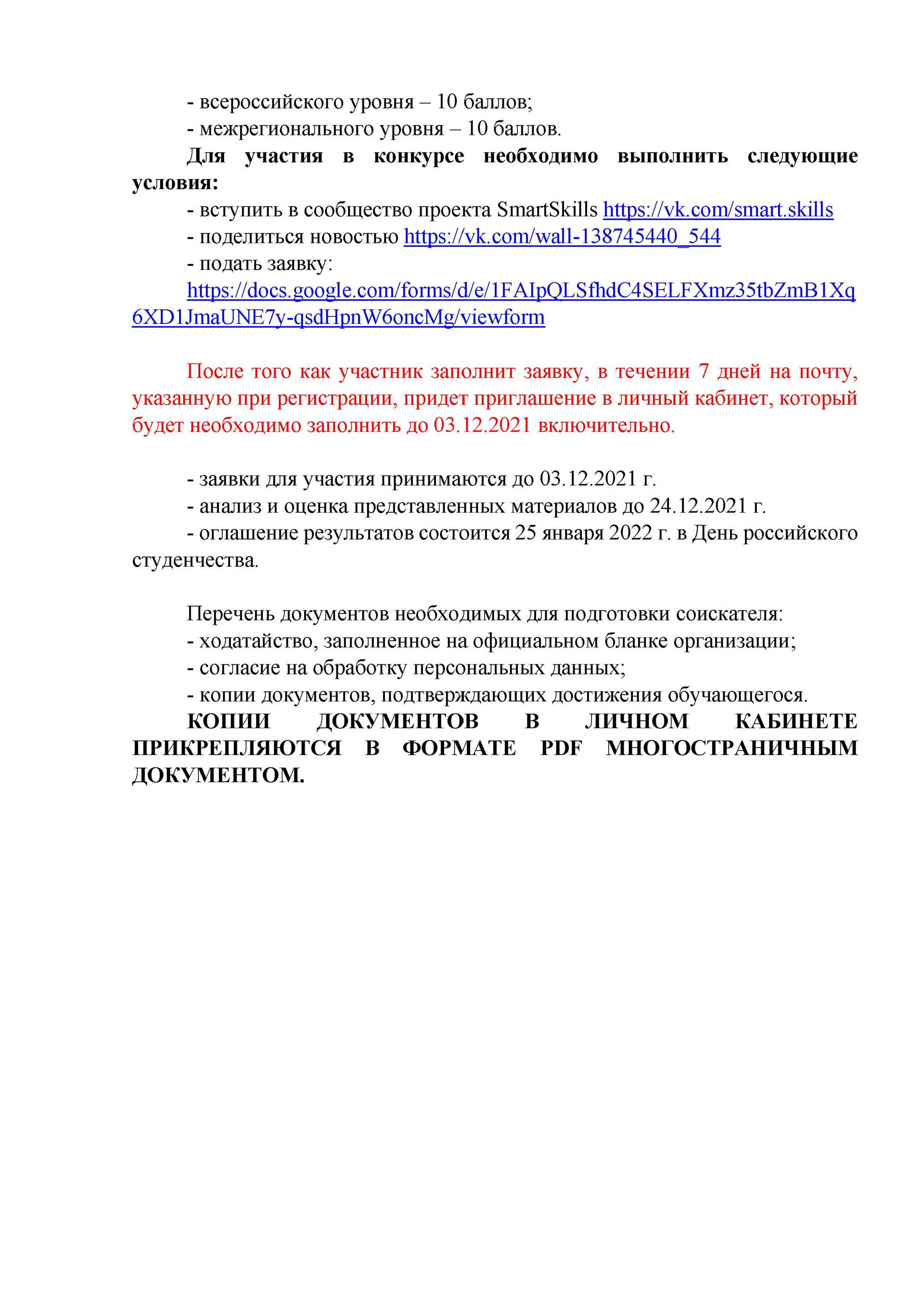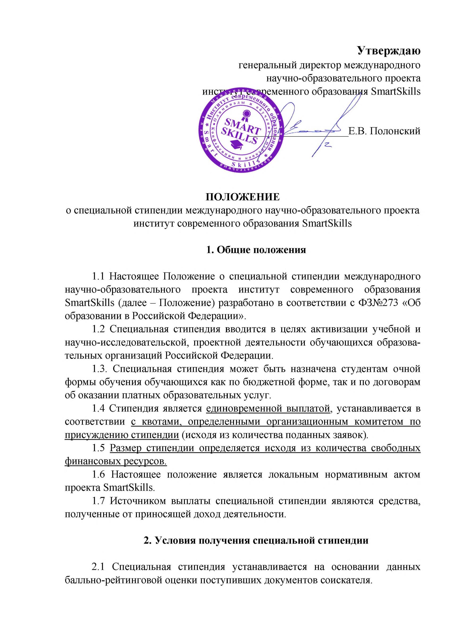 Условия конкурса отражены в Положении о специальной стипендии международного научно-образовательного проекта институт современного образования SmartSkills