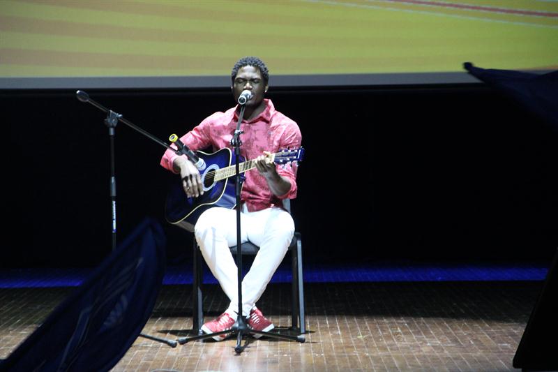 В команде группы поддержки КГЭУ был студент первого курса Саломау Джеурисио Бонде, который пришел с подарком – авторской песней «Ты нужна мне».