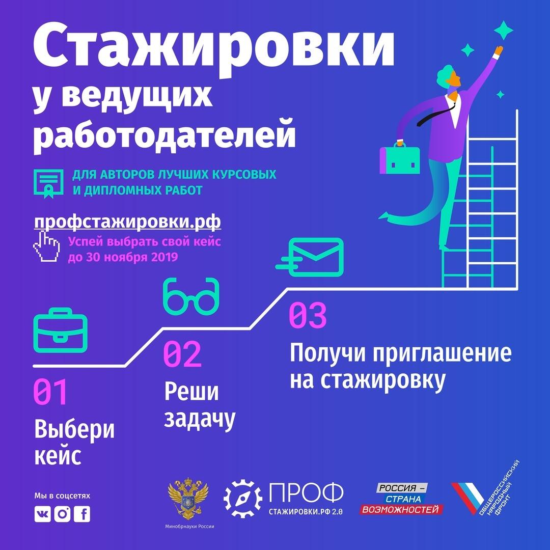 Министерство науки и высшего образования Российской Федерации, АНО «Россия – страна возможностей» и Общественный народный фронт в целях содействия в решении задач, поставленных в Указе Президента Российской Федерации В.В. Путина от 7 мая 2018 года № 204 «О национальных целях и стратегических задачах развития Российской Федерации на период до 2024 год» продолжают реализацию проекта «Профстажировки 2.0».