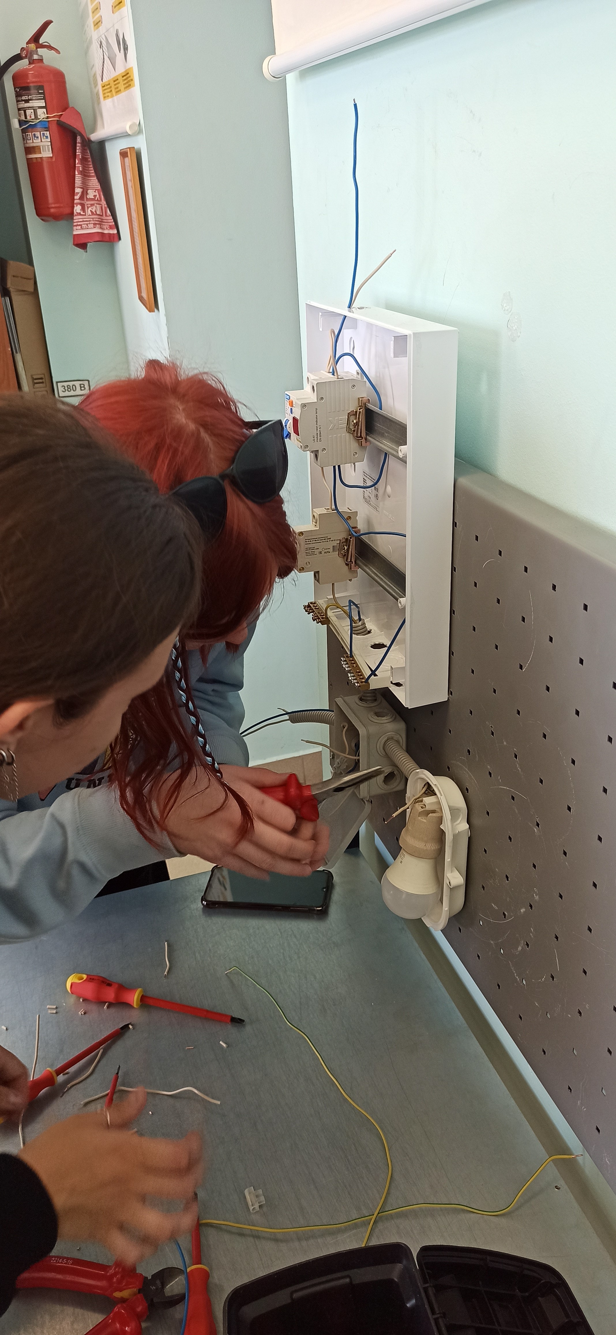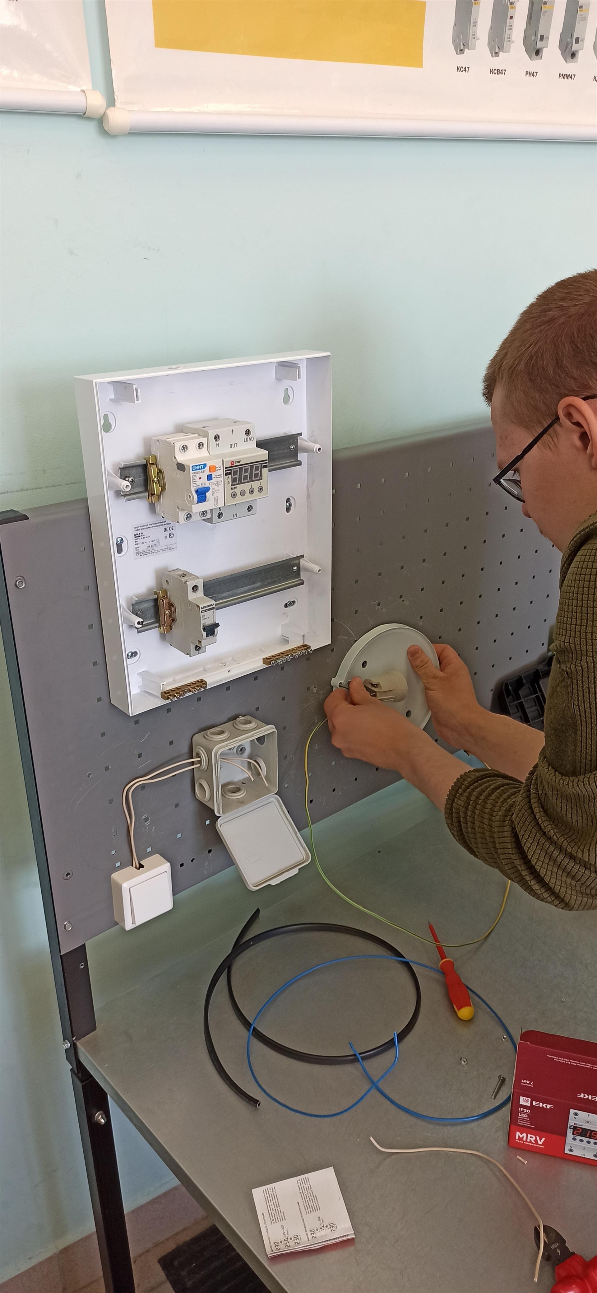 Студенты во время обучения изучили программы электрических монтажных схем, технологии монтажа конструкций осветительных устройств, проводов и кабелей, изучение нормативных материалов и технической документации.