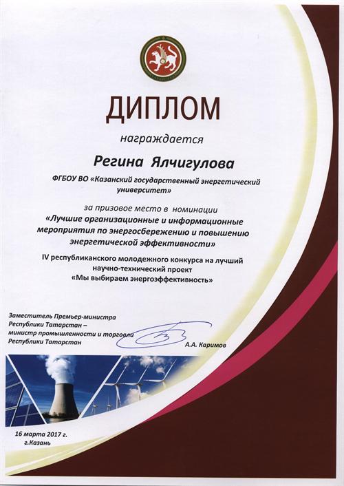 В рамках выставки "Энергетика. Ресурсосбережение 2017" прошёл IV республиканский молодёжный конкурс на лучший научно-технический проект "Мы выбираем энергоэффективность". Поздравляем магистранта группы ЭОм-1-15 Ялчигулову Регину, занявшую призовое место в номинации "Лучшие организационные и информационные мероприятия по энергосбережению и повышению энергетической эффективности"