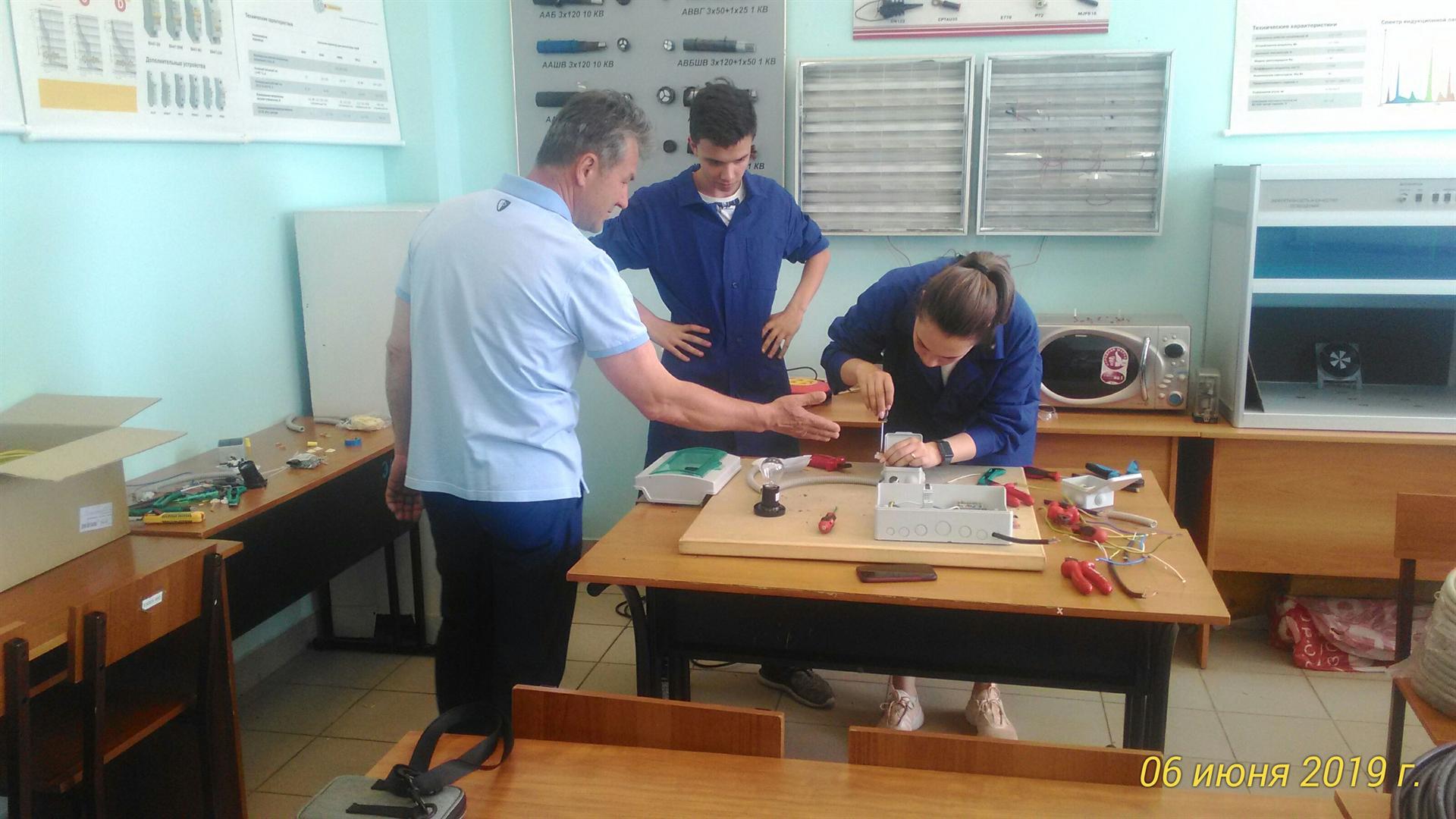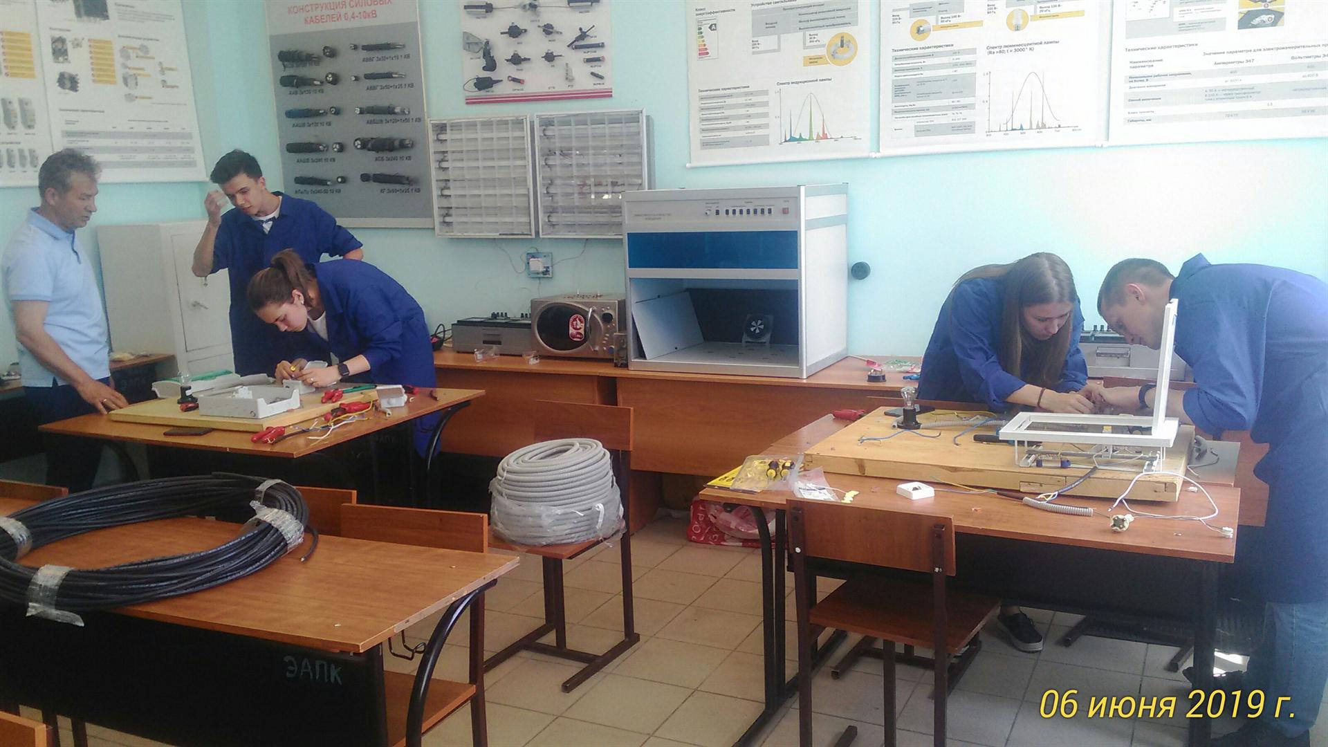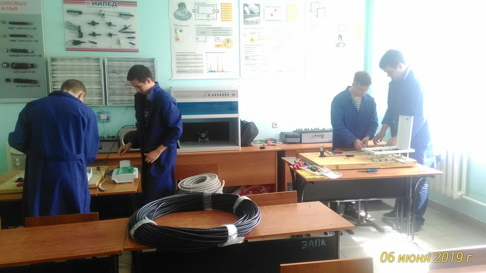 С 5 по 7 июня 2019 г. на кафедре «Энергообеспечение предприятий и энергоресурсосберегающих технологий» прошли квалификационные экзамены по профессии «Электромонтажник по освещению и осветительным сетям 2-го разряда». В сдаче экзамена приняли участие 44 студента групп ЭО-1-16 и ЭО-2-16.