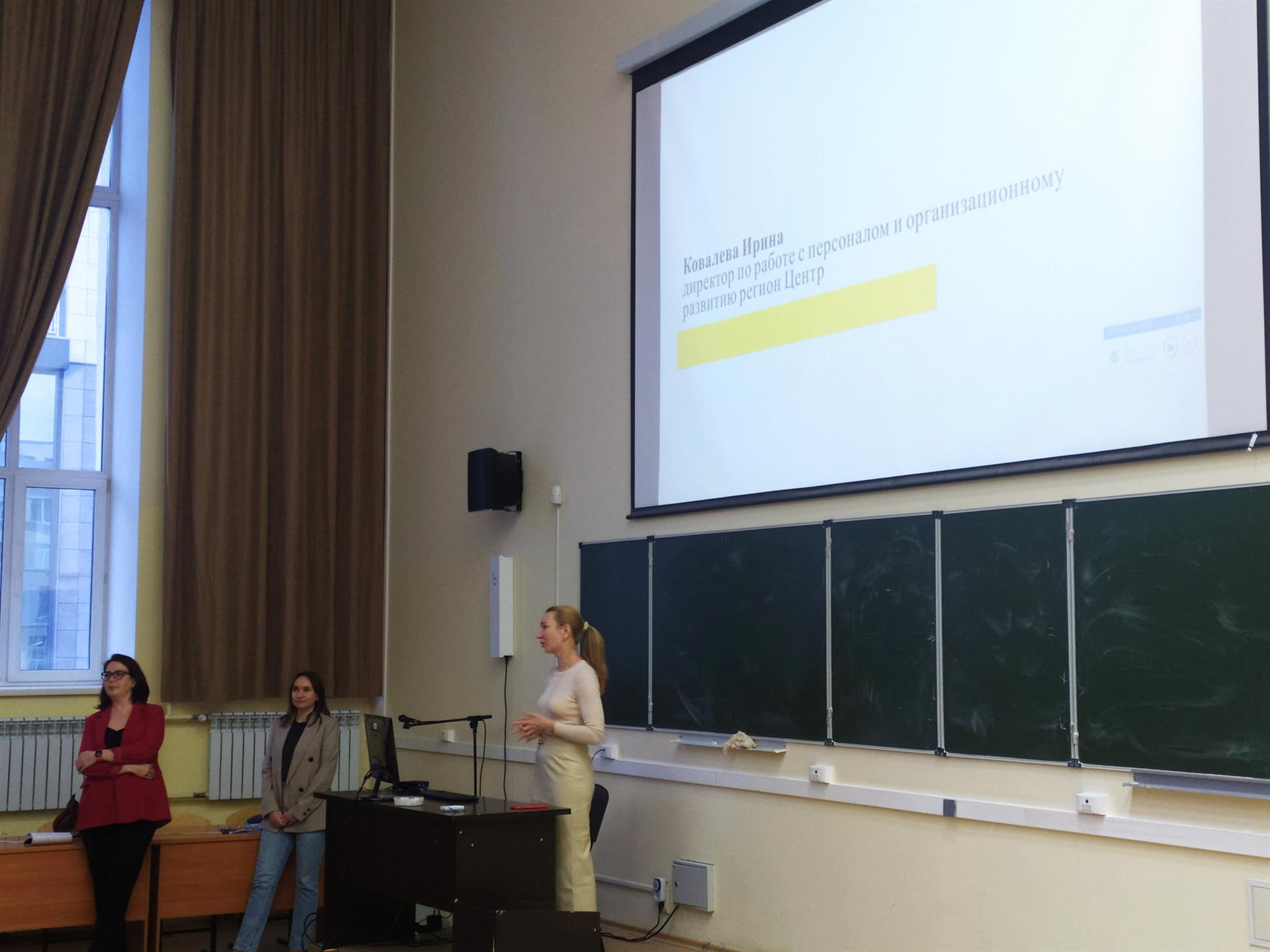В своем выступлении директор по работе с персоналом и организационному развитию региона Центр Ирина Ковалева презентовала программу стажировки для студентов, которая имеет ряд преимуществ, таких как гибридный график работы или полный beefree, оформление по трудовому договору, возможность развиваться и перехода в штат компании. Финансовый директор региона Центр Ольга Лавшук ответила на вопрос, чем занимаются финансы в регионе. Директор по развитию корпоративного бизнеса Эльвира Пашенкова рассказала ребятам о своем становлении в компании. В заключении встречи представители компании ответили на ряд вопросов студентов, касающихся возможности прохождения практики, возможности временного трудоустройства, работы в летний период. По итогам встречи ребята поблагодарили гостей за исчерпывающую информацию о компании.
