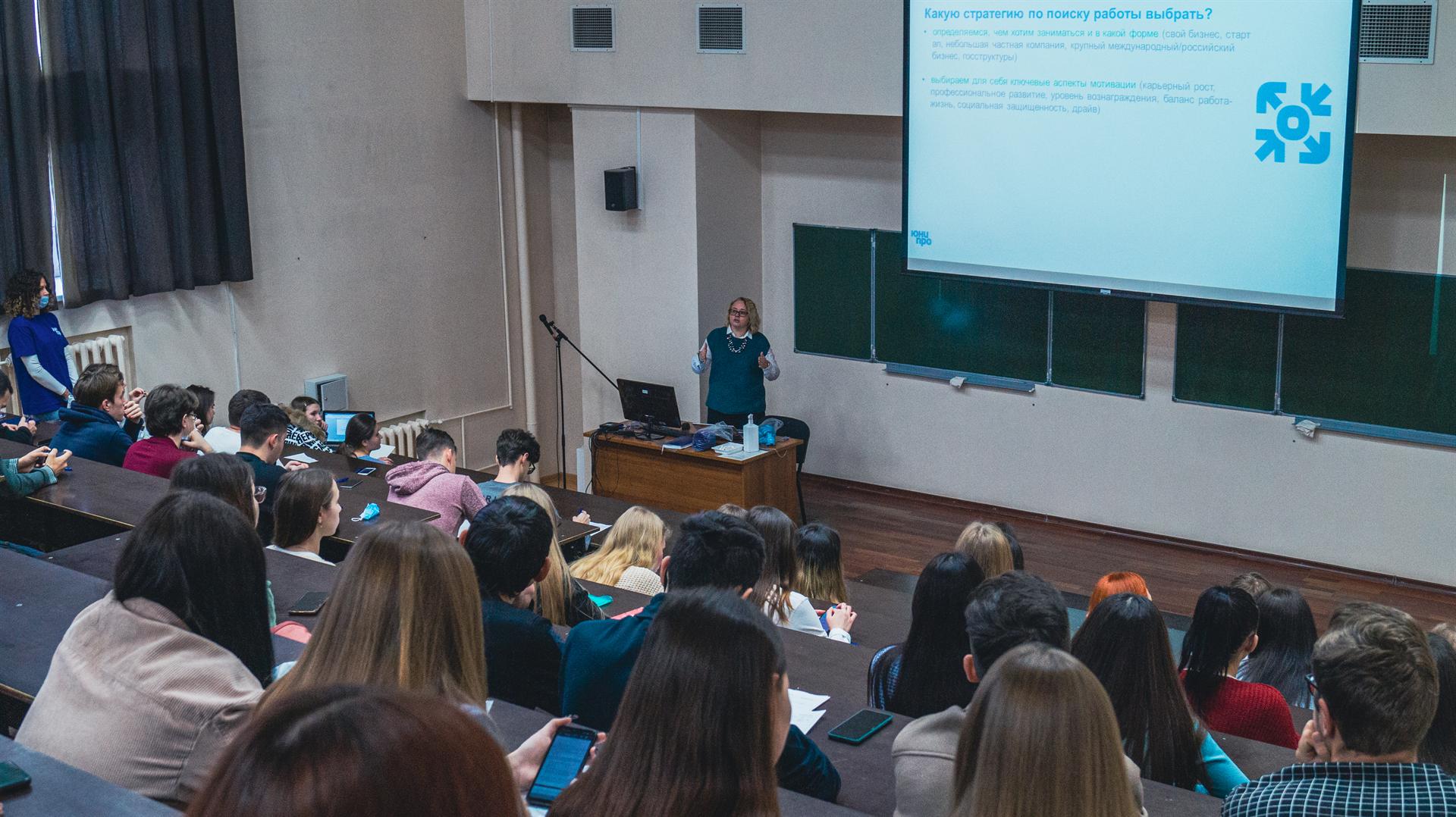 Ирина Петрова и ведущий специалист управления по подбору персонала и работе с молодыми специалистами Виктория Лопатина рассказали ребятам, чем занимается компания, какие перспективные направления для карьерного роста она может предложить молодым специалистам, и ответили на все вопросы будущих выпускников. Гости также провели для студентов мастер-класс по поиску вакансии, грамотному составлению резюме и подготовке к собеседованию.