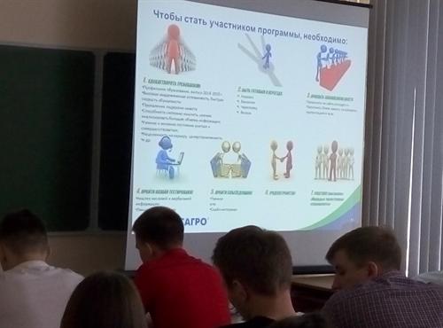 На презентации АО «ФосАгро» был продемонстрирован фильм, повествующий о буднях одного из крупнейших предприятий страны. Д.Е Дурнова рассказала присутствующим о кадровой политике компании, перспективах ее развития и программе «Молодые талантливые специалисты». Специалист по трудоустройству и развитию персонала ответила на вопросы студентов о социальных гарантиях, условиях работы на предприятии и перспективах карьерного роста. Главной целью собрания стала презентация программы трудоустройства выпускников КГЭУ в структурных подразделениях АО «ФосАгро».