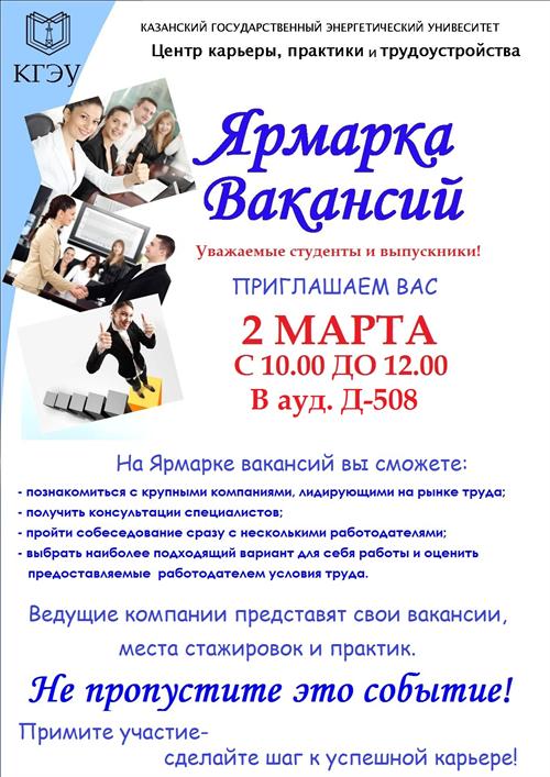 2 МАРТА В АУД. Д-508 ПРОЙДЁТ ЯРМАРКА ВАКАНСИЙ - 2017.