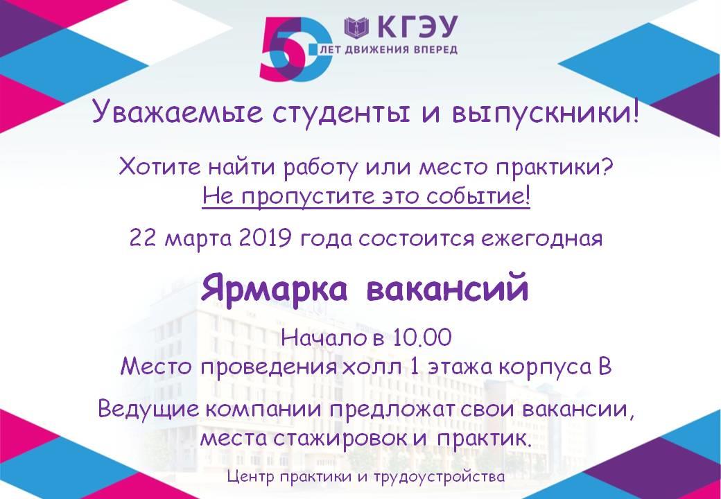 22 марта 2019 года в 10.00 в холле 1 этажа корпуса В состоится Ярмарка вакансий.