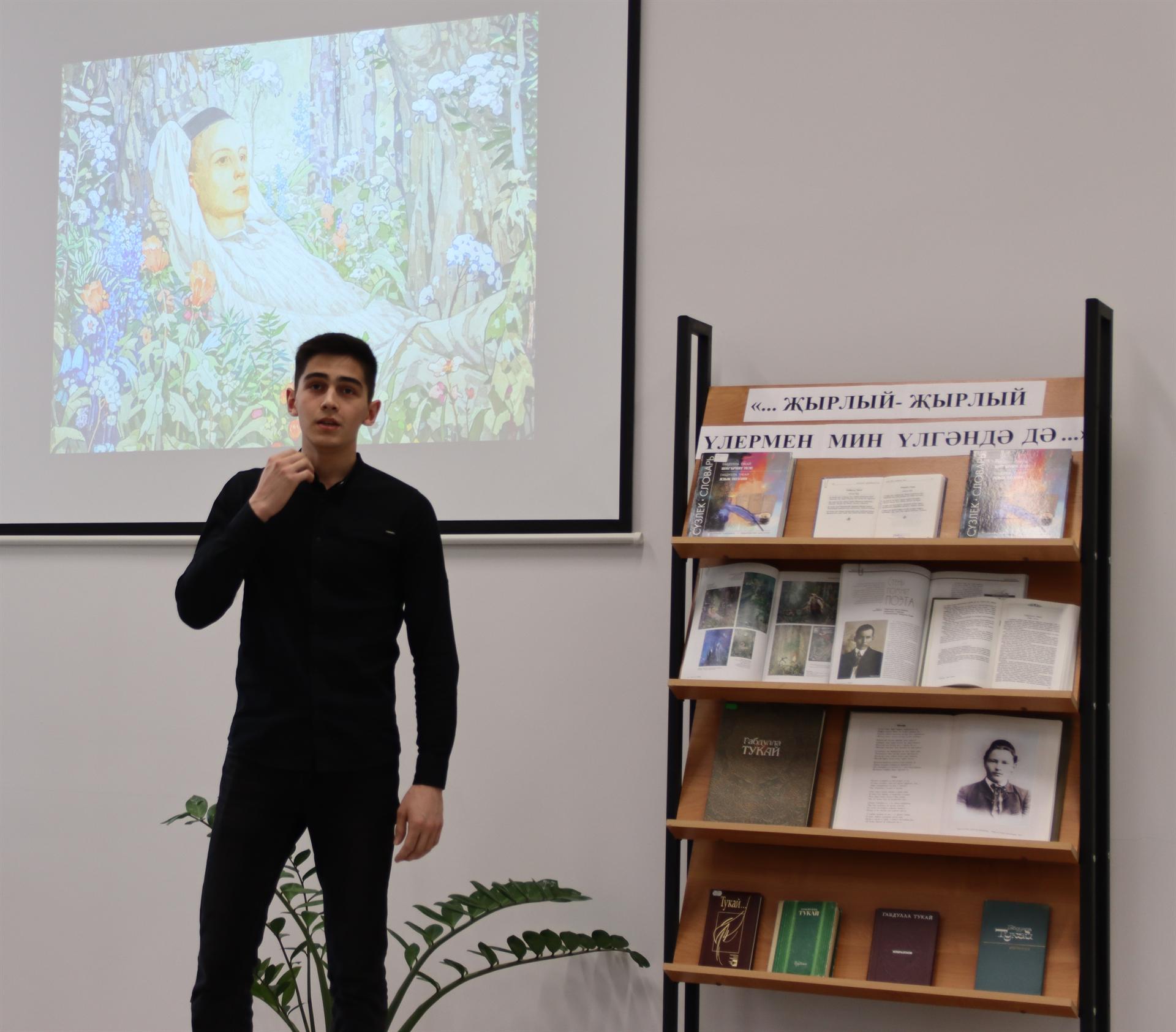 Сотрудники библиотеки рассказали о жизни и творчестве Габдуллы Тукая. Студенты прочли стихи поэта, исполнили песню и мелодию на курае.