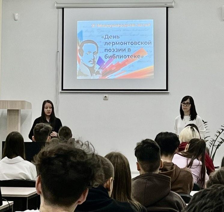 Сотрудники читального зала совместно со студентами и преподавателями приняли участие в XI Международной акции «День лермонтовской поэзии в библиотеке».