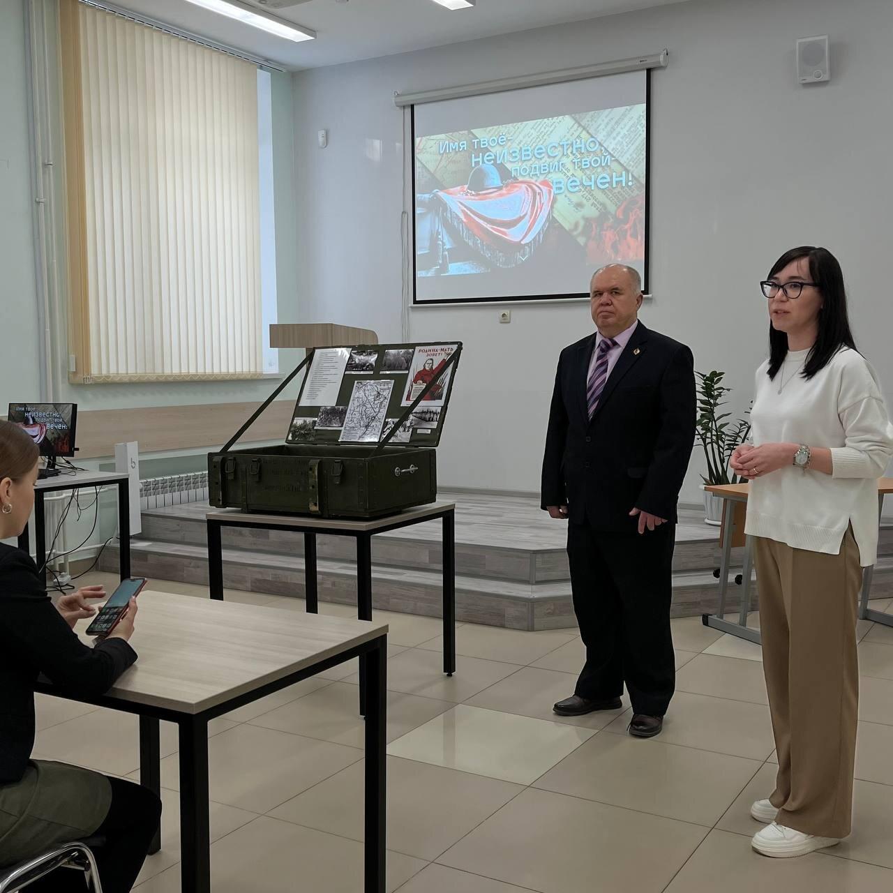 В этот день по всей России проходят патриотические и памятные акции: посещения братских могил и мемориалов, возложения цветов, минуты молчания, публичные чтения имен тех, чьи личности удалось установить, и другие. В читальном зале библиотеки прошла встреча заведующего музеем Рафиля Загыртдинова со студентами 1 курса. Также мероприятие посетили участники поискового движения.