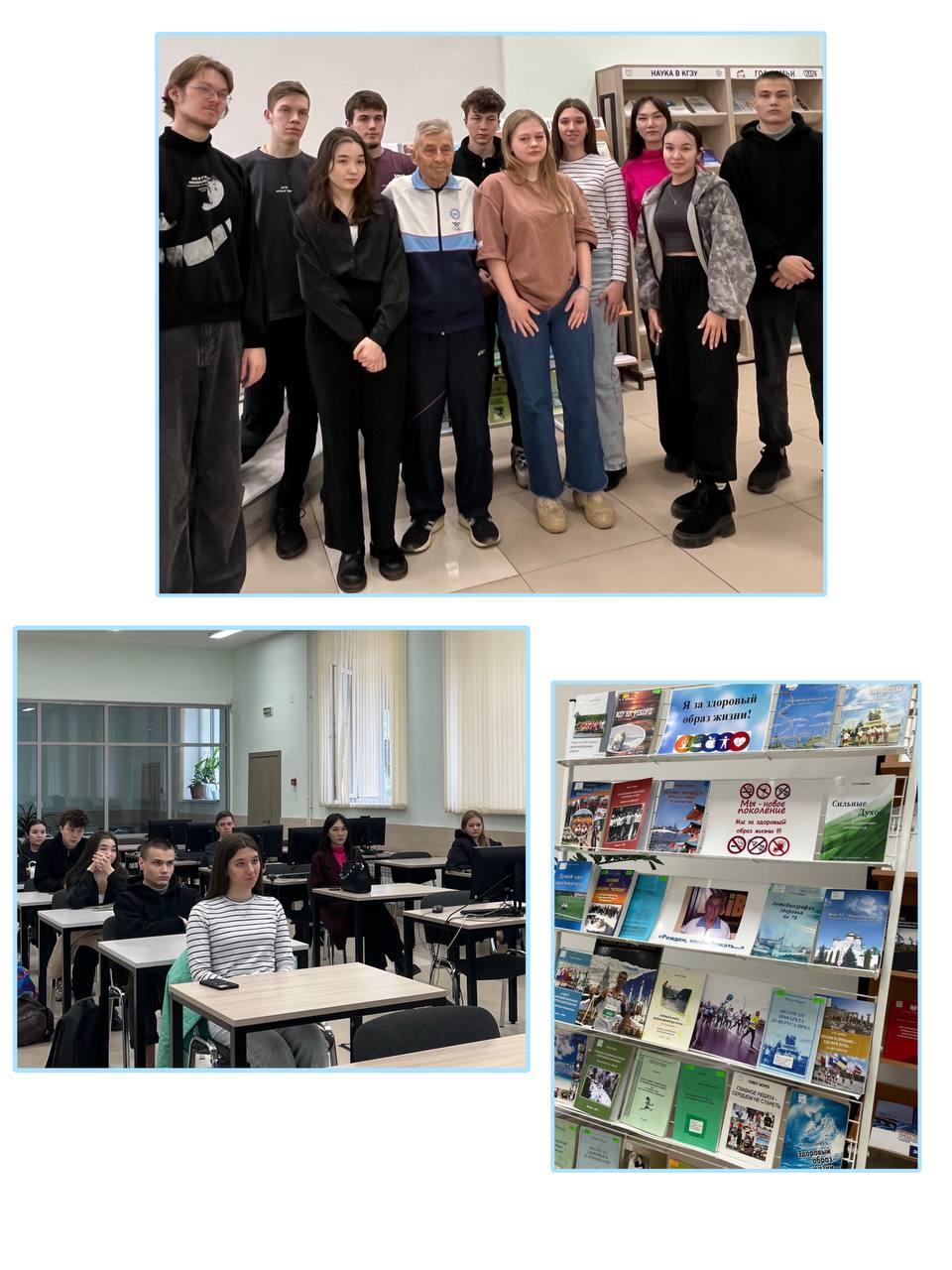 А в честь этого Дня, в читальном зале КГЭУ мы провели встречу студентов групп ИЗ-1-23 и ИЗ 2-23 с бывшим преподавателем физической культуры нашего университета, участником множества марафонов, Павлом Павловичем Моревым