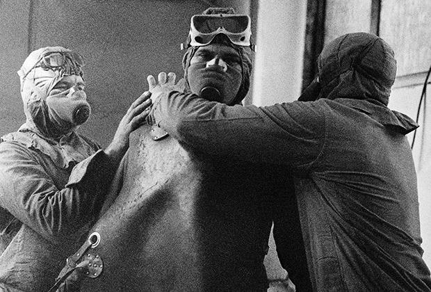 Пожар на ЧАЭС тушил дежурный караул пожарных частей Чернобыля и Припяти, а также дополнительные бригады из Киева и близлежащих областей. Из средств защиты у пожарных были только брезентовая роба, рукавицы, каски и противогазы, не способные противостоять радиации.