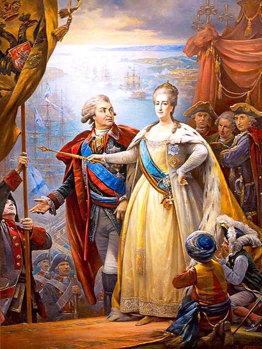 В 1776 г. Григорий Александрович был назначен губернатором Новороссии, Азова и Астрахани, и принялся энергично заселять эти территории, пригласив туда православных жителей Балкан. В 1783 г. Потёмкину удалось реализовать свой проект присоединения Крыма к России, за что он получил титул светлейшего князя Таврического. Потёмкин способствовал освоению Северного Причерноморья и строительству в этом крае Херсона, Николаева, Севастополя и Екатеринослава. Под его руководством на Чёрном море велась постройка военного и торгового флотов, сыгравших большую роль в войнах с Турцией.