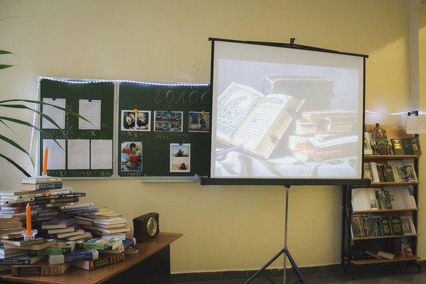 Сотрудники библиотеки провели экскурс в историю создания библиотек. Был показан фильм о месте книги в современном мире. В конкурсах не было проигравших - все участники награждены памятными призами и подарками.  Интеллектуальный турнир "Что? Где? Когда?", чтение стихов и, конечно же, авторские песни в исполнении клуба авторской песни "Привал" никого не оставили равнодушными!