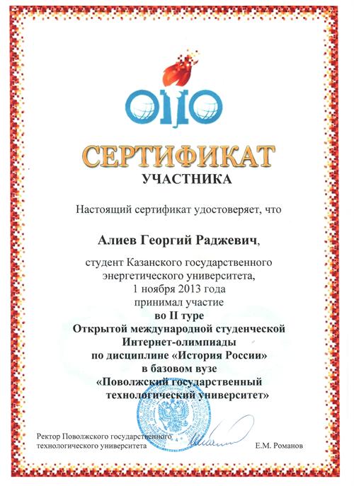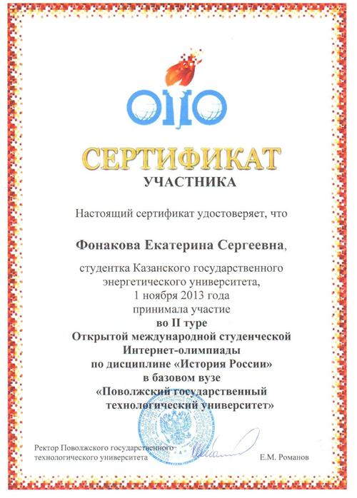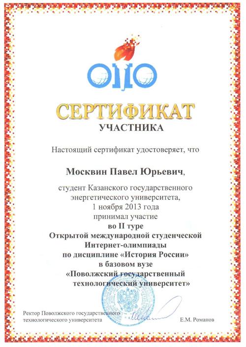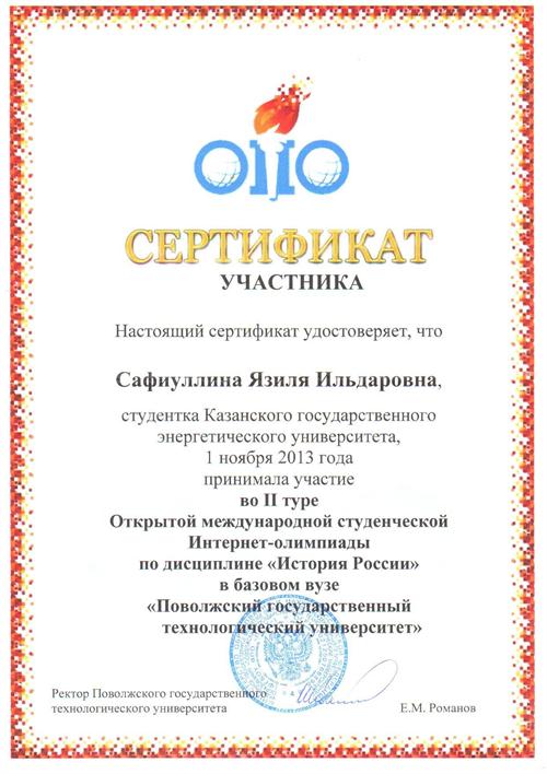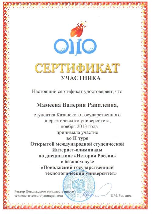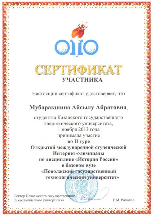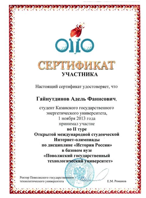 1 ноября 9 студентов Казанского государственного энергетического университета приняли участие во втором туре Международной Интернет-олимпиаде по дисциплине «История» в г. Йошкар-Ола.