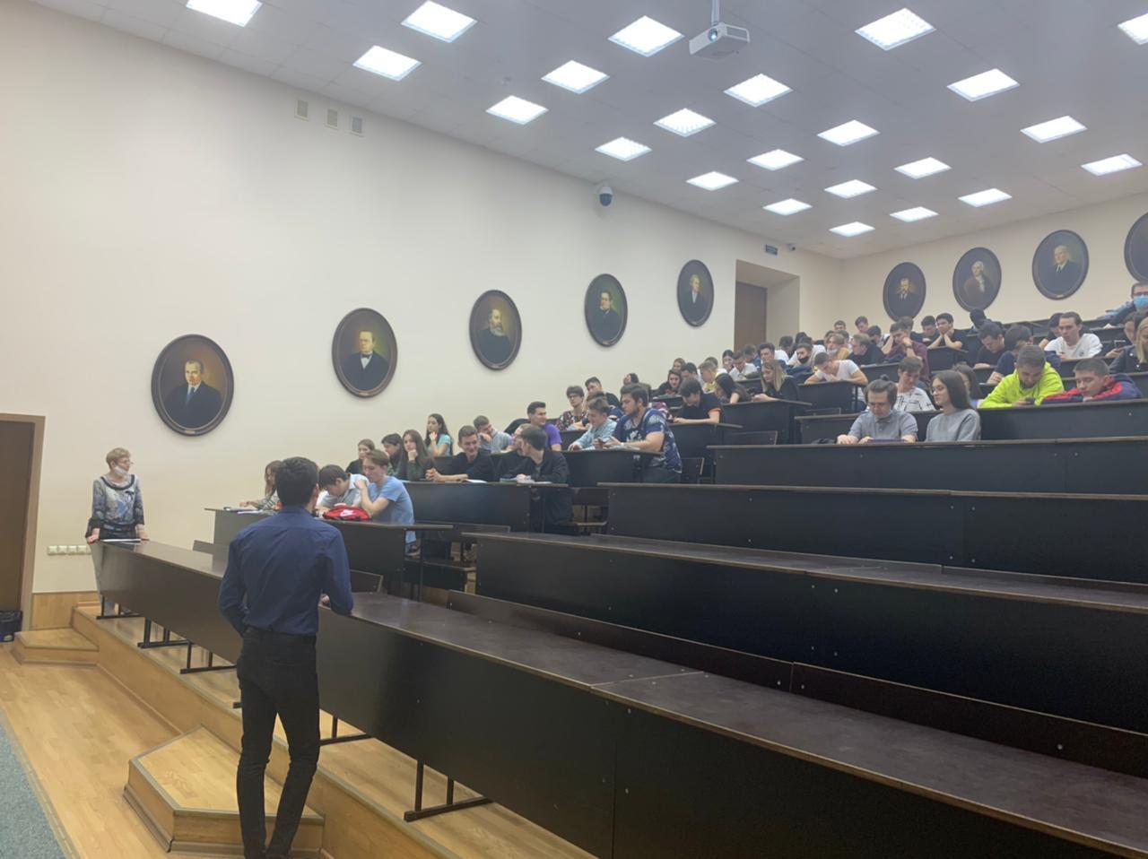 26 мая в 15:00 лекторий был проведен для первокурсников института ИЦТЭ. Спикером выступил молодёжный помощник руководителя аппарата Антитеррористической комиссии в Республике Татарстан, студент нашего вуза Ишмуратов Эдвин.