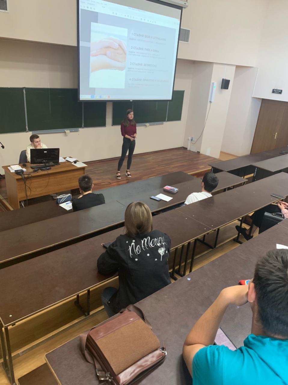 Ребята узнали о том, что такое помощь, о её видах. Спикеры выделили этапы горевания и то, что для каждого очень важна даже самая маленькая внимательность к своим близким, друзьям, одногруппникам.