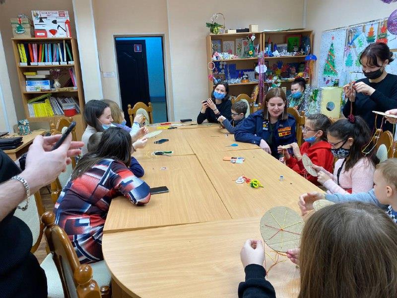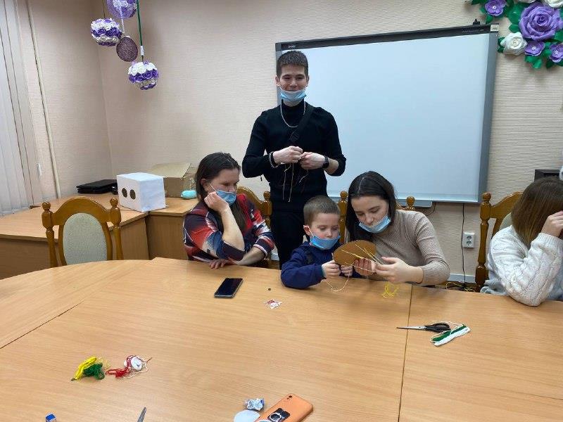 Ну и куда без ярких и запоминающихся мастер-классов и интерактивов. Ребята вместе с детьми сплели фенечки на память, а потом сыграли в игру «Кажется нащупал», в которой малыши угадывали, что находится внутри коробки и получили за участие не только запоминающиеся эмоции, но и пакет сладостей.