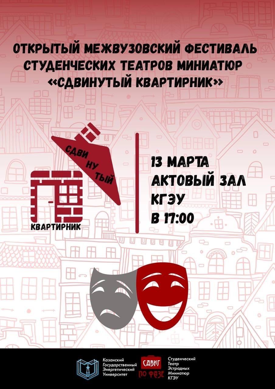 13 марта в 17:00 на сцене актового зала КГЭУ пройдет Открытый межвузовский фестиваль театров миниатюр «Сдвинутый квартирник».