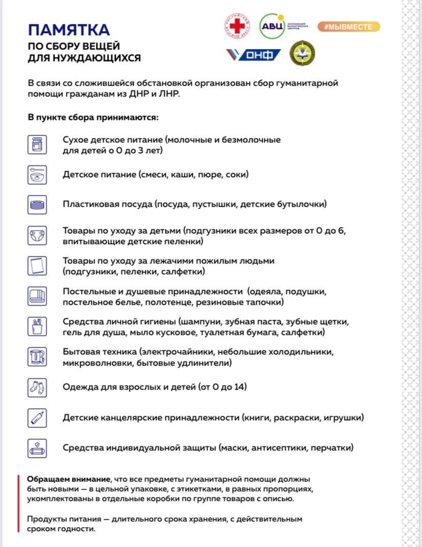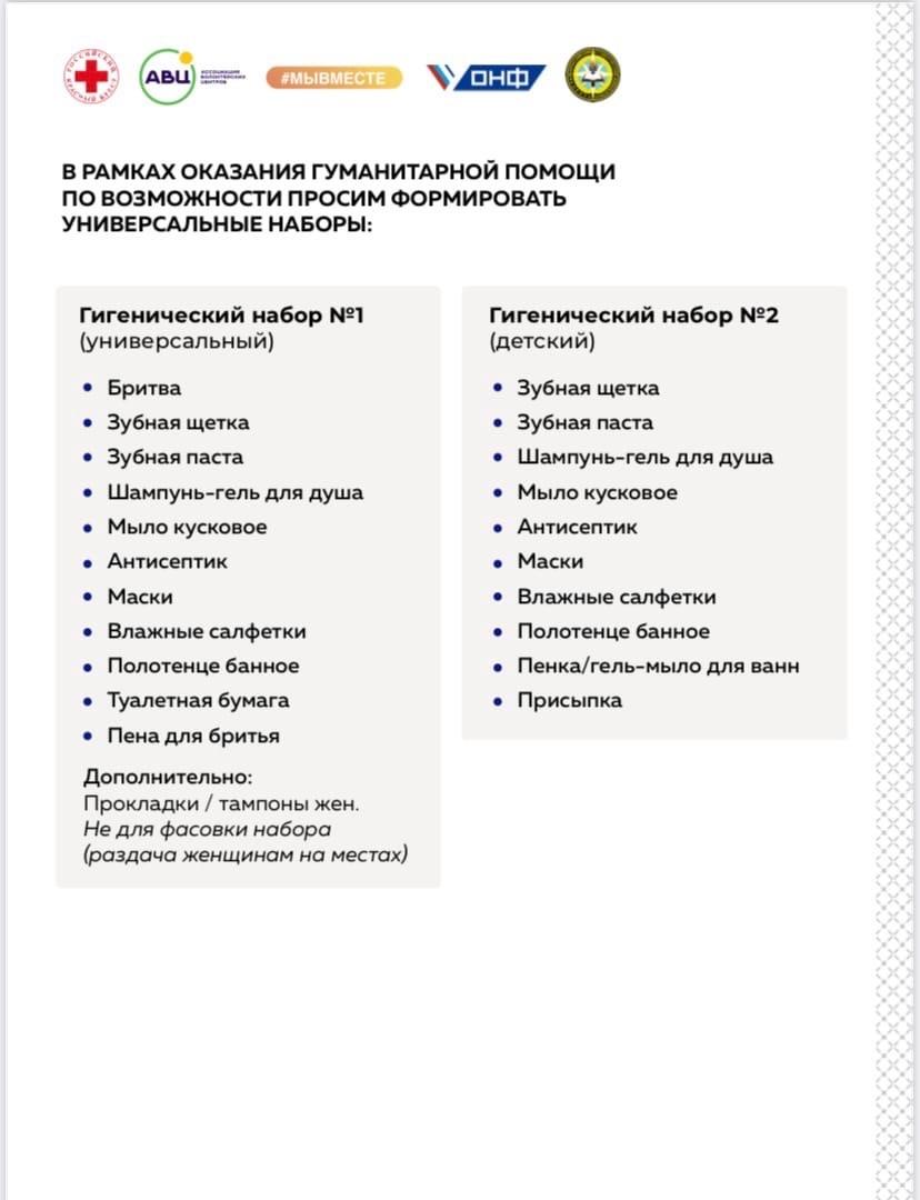 🔹Все предметы гуманитарной помощи должны быть НОВЫМИ (в цельной упаковке)