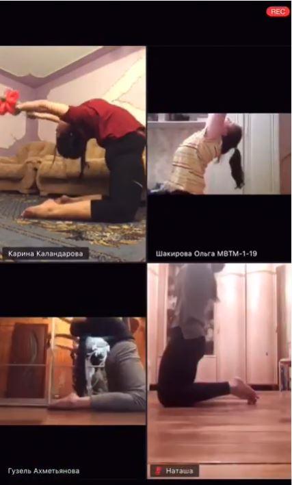 Несмотря на вынужденную изоляцию, коллектив продолжает заниматься в онлайн-режиме. Участники коллектива дистанционно проводят репетиции, которые проходят в следующем формате: для начала проводится разогревающий блок, направленный на растяжение суставов и мышц, затем для поддержания физической формы следует силовой блок, ну а оставшиеся время участники посвящают разучиванию новой хореографии и подготовке к «Студенческой весне-2020".