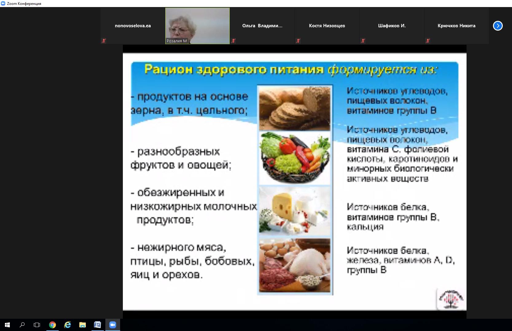18 сентября сотрудники ГАУЗ «Республиканского центра медицинской профилактики» провели видеолекцию на тему: «Основы рационального и сбалансированного питания» в режиме онлайн для студентов группы 1 курса Казанского государственного энергетического университета.