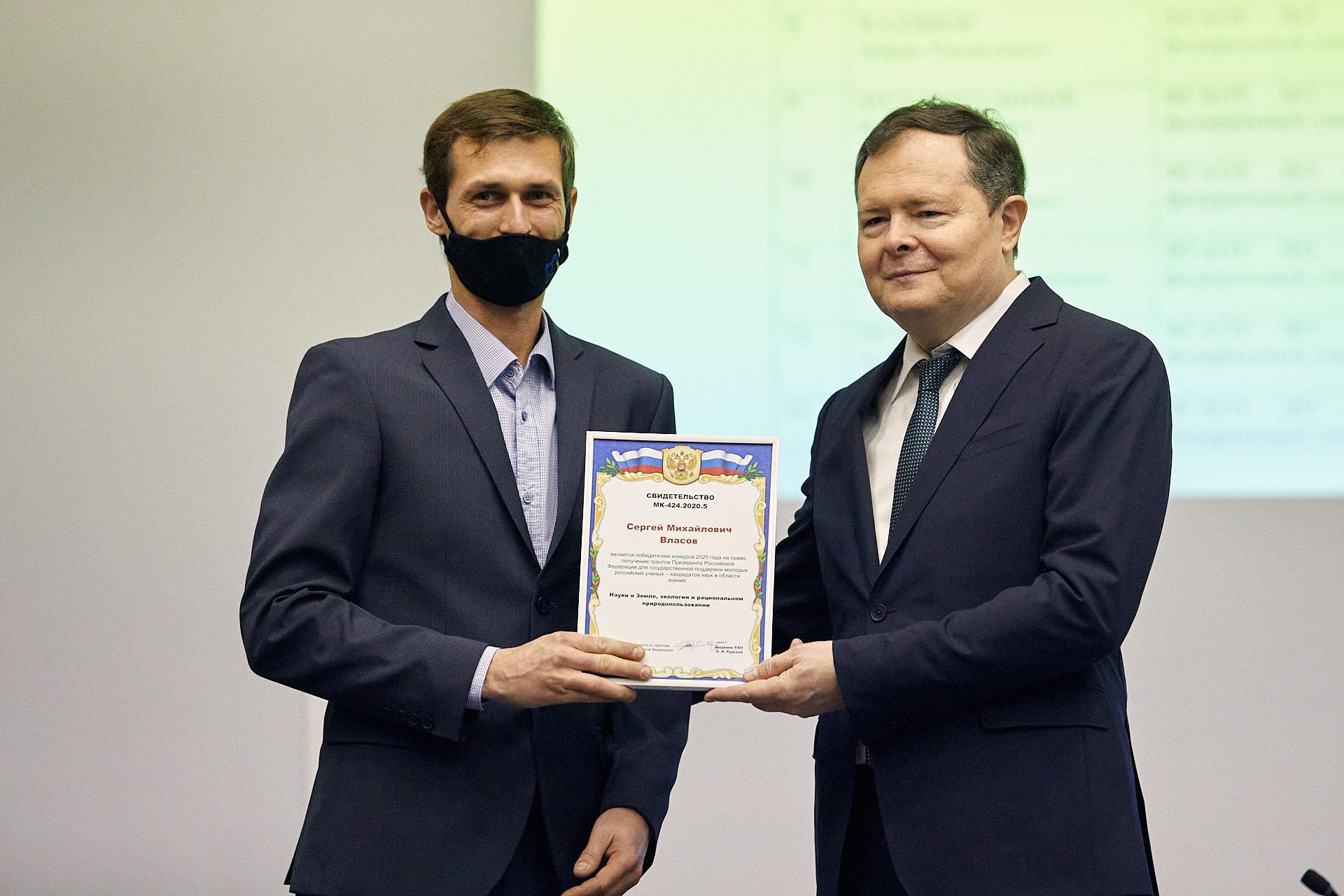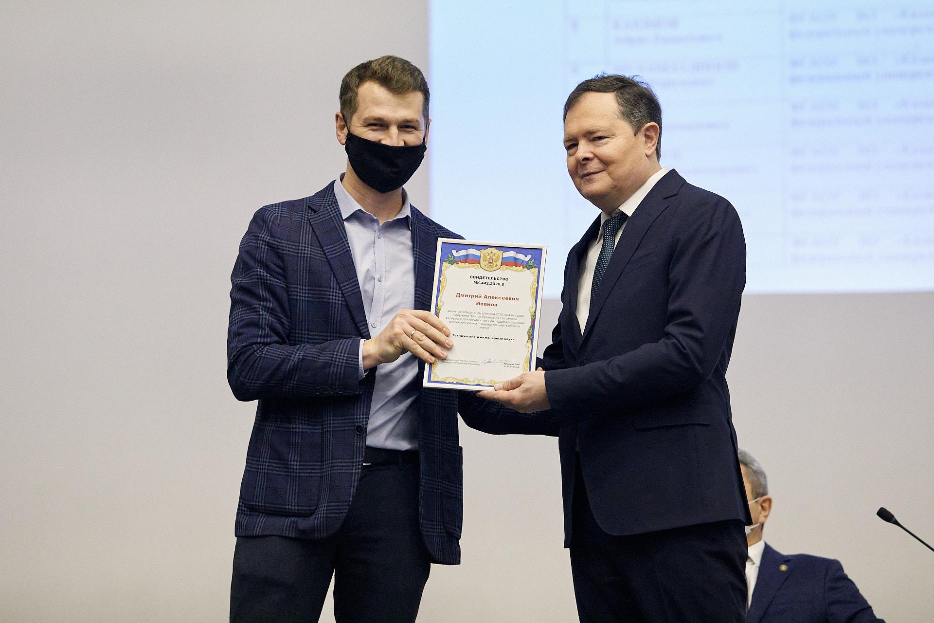 Главный федеральный инспектор по Республике Татарстан Виктор Демидов поздравил победителей конкурса 2020 года на право получения грантов Президента Российской Федерации для государственной поддержки молодых российских ученых – кандидатов наук. Доцент кафедры ТЭС Сергей Власов получил грант в области знаний "Науки о Земле, экологии и рациональном природопользовании" за исследование "Разработка экологически эффективных и ресурсосберегающих технологических решений для систем водопользования и водоотведения на предприятиях энергетического сектора".