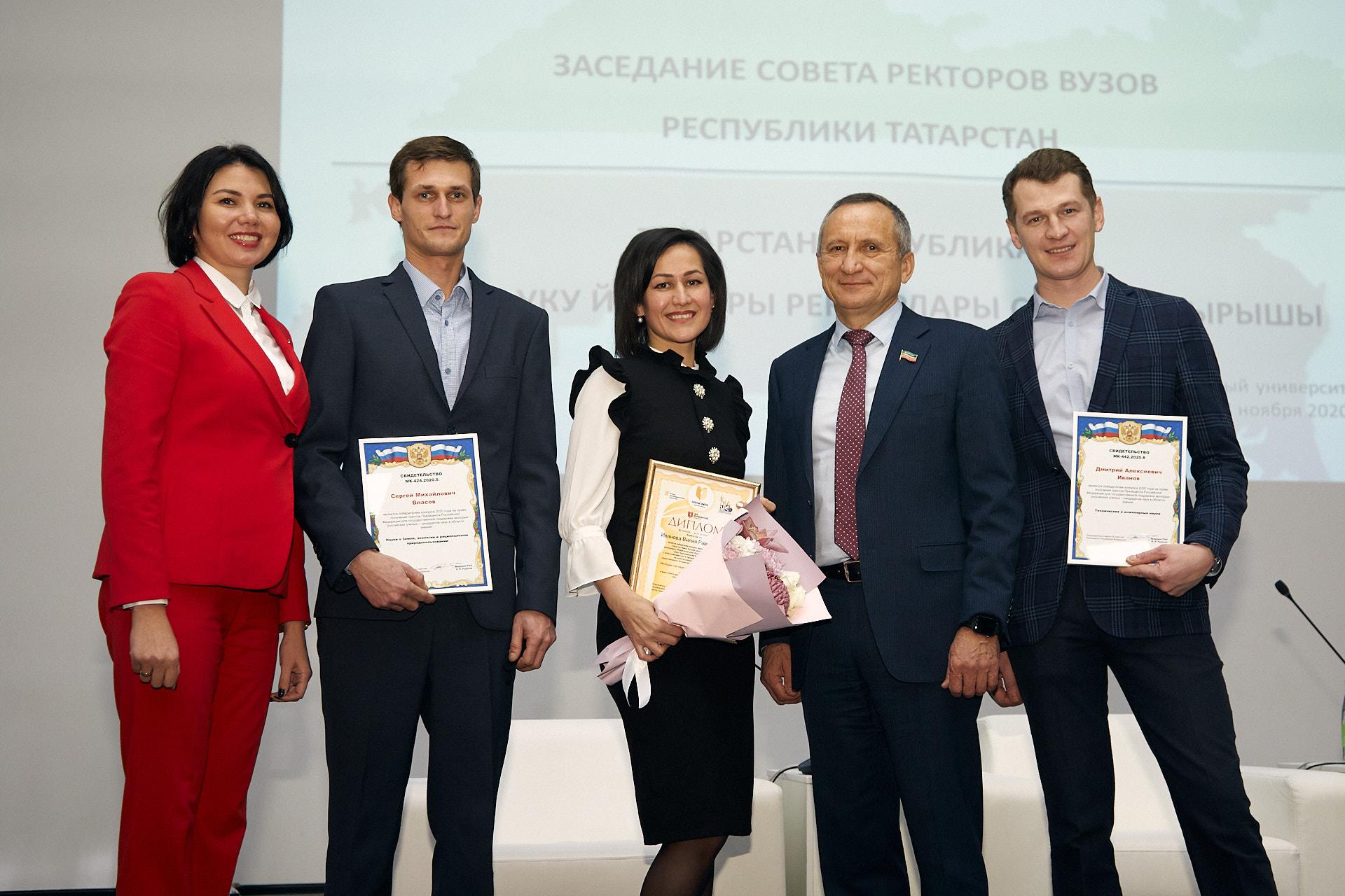 В рамках мероприятия состоялась официальная церемония вручения грантов Президента Российской Федерации для государственной поддержки научных исследований молодых отечественных ученых в 2020 году, а также правительственных и ведомственных наград членам Совета ректоров вузов РТ и представителям вузов республики.