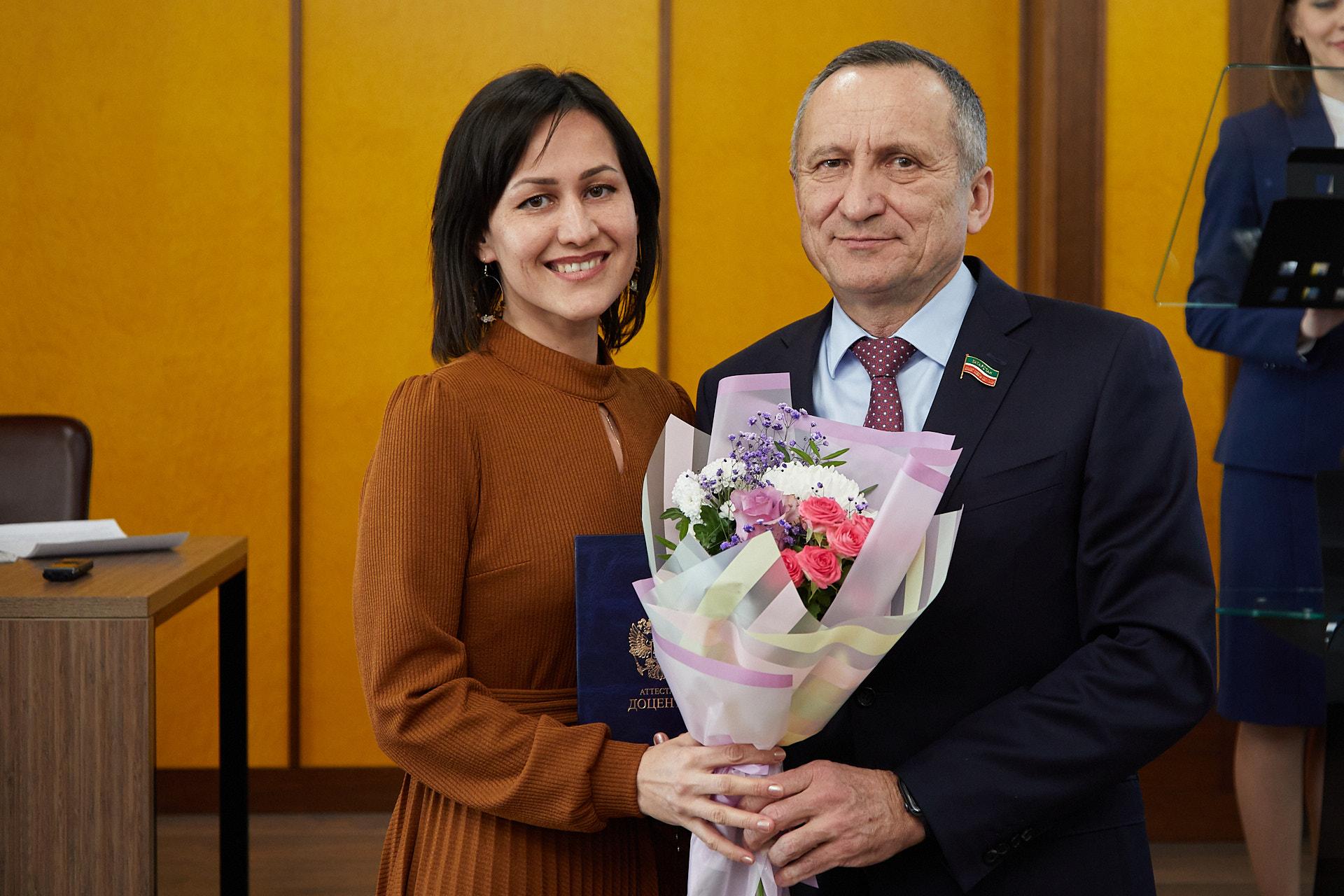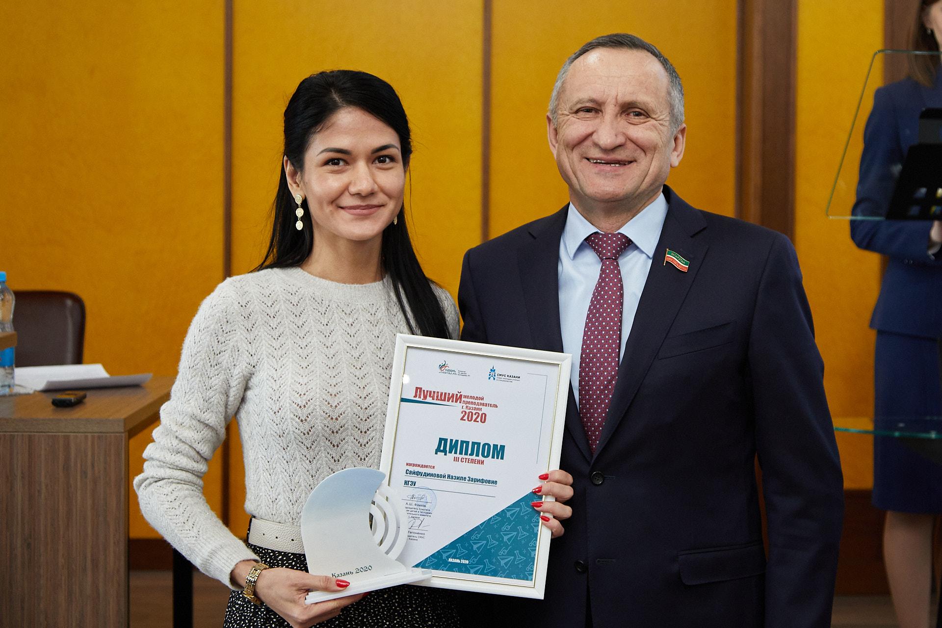 В рамках мероприятия состоялась торжественная церемония вручение стипендий, диплома, аттестатов и наград. Дипломы доктора технических наук получили Василь Касимов – доцент кафедры «Экономика и организация производства» (научный руководитель - доктор физико-математических наук, профессор кафедры «Экономика и организация производства» Ренат Минуллин). Аттестат доцента по специальности «Электротехнические комплексы и системы» вручили Вилии Ивановой. Диплома III степени конкурса «Лучший молодой преподаватель Казани – 2020» удостоена Назиля Сайфутдинова - старший преподаватель кафедры «Менеджмент».