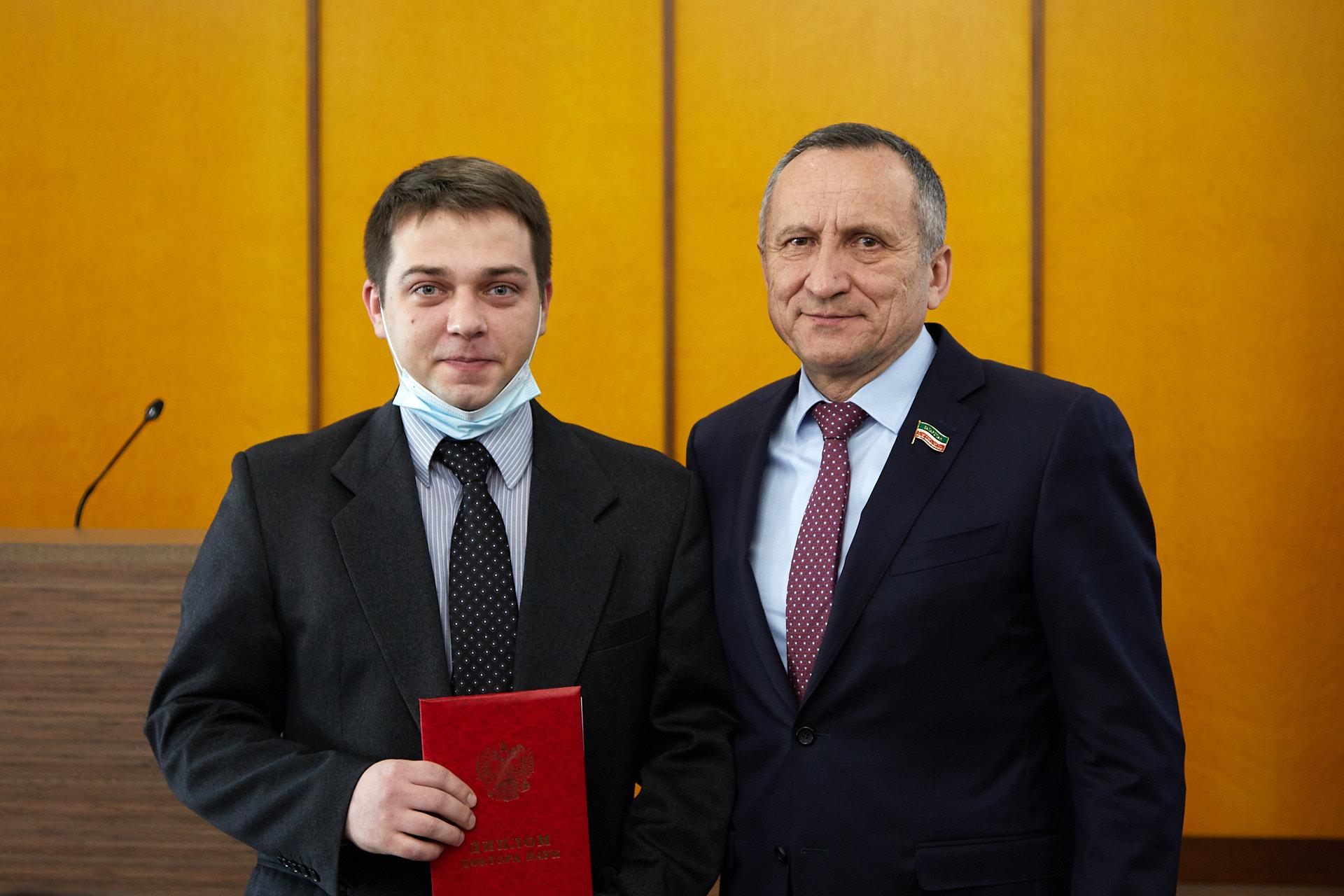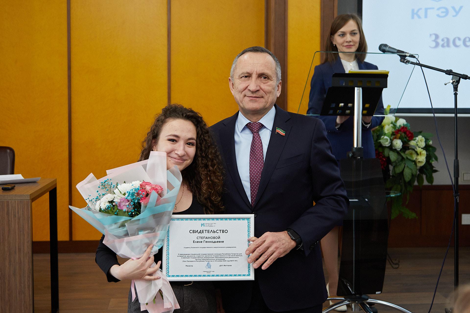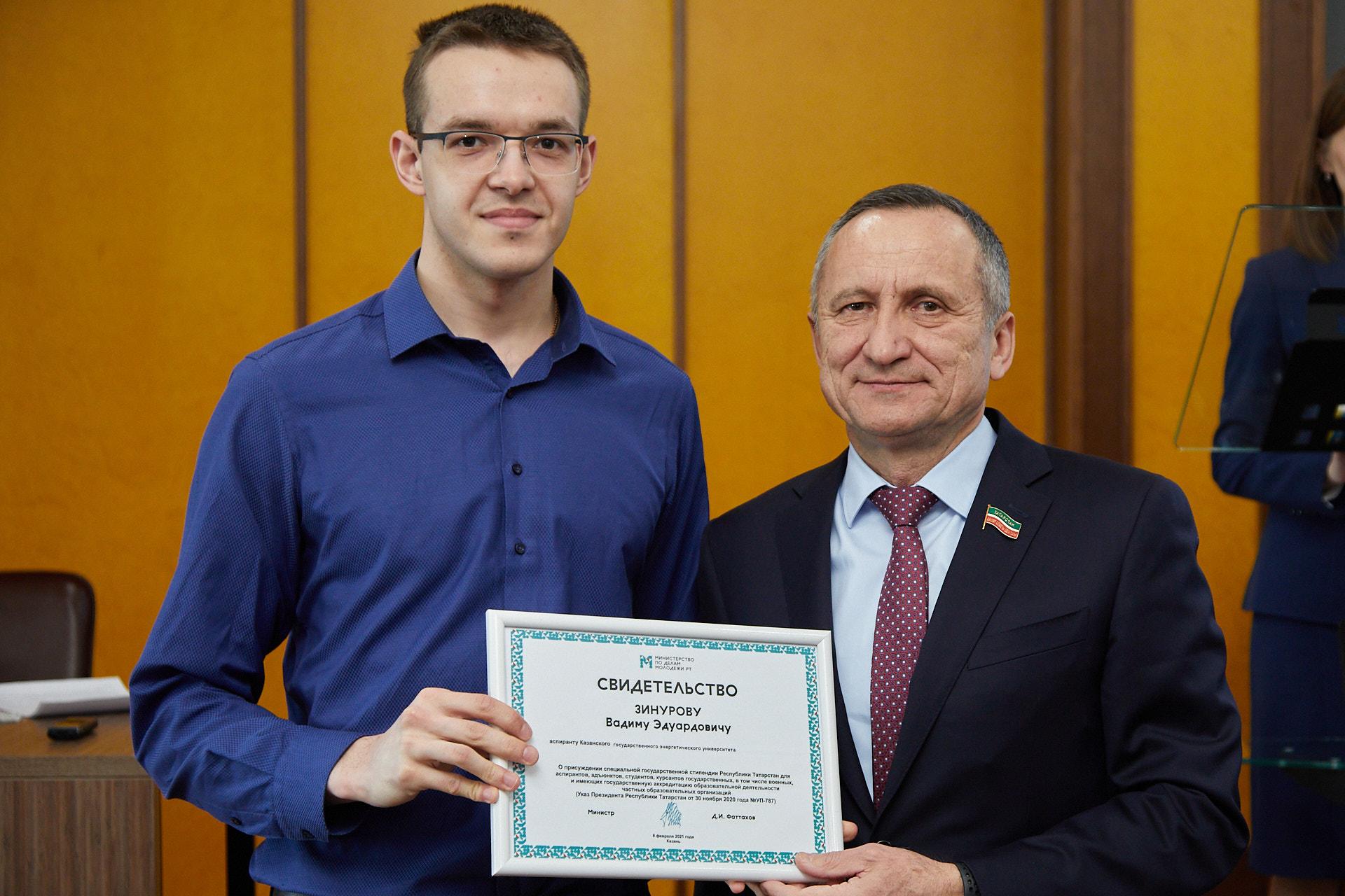 Обладателями специальной государственной стипендии Республики Татарстан стали аспирант Вадим Зиннуров (научный руководитель – доктор технических наук Андрей Дмитриев) и студентка Елена Степанова (научный руководитель – кандидат физико-математических наук Рустэм Хузяшев).