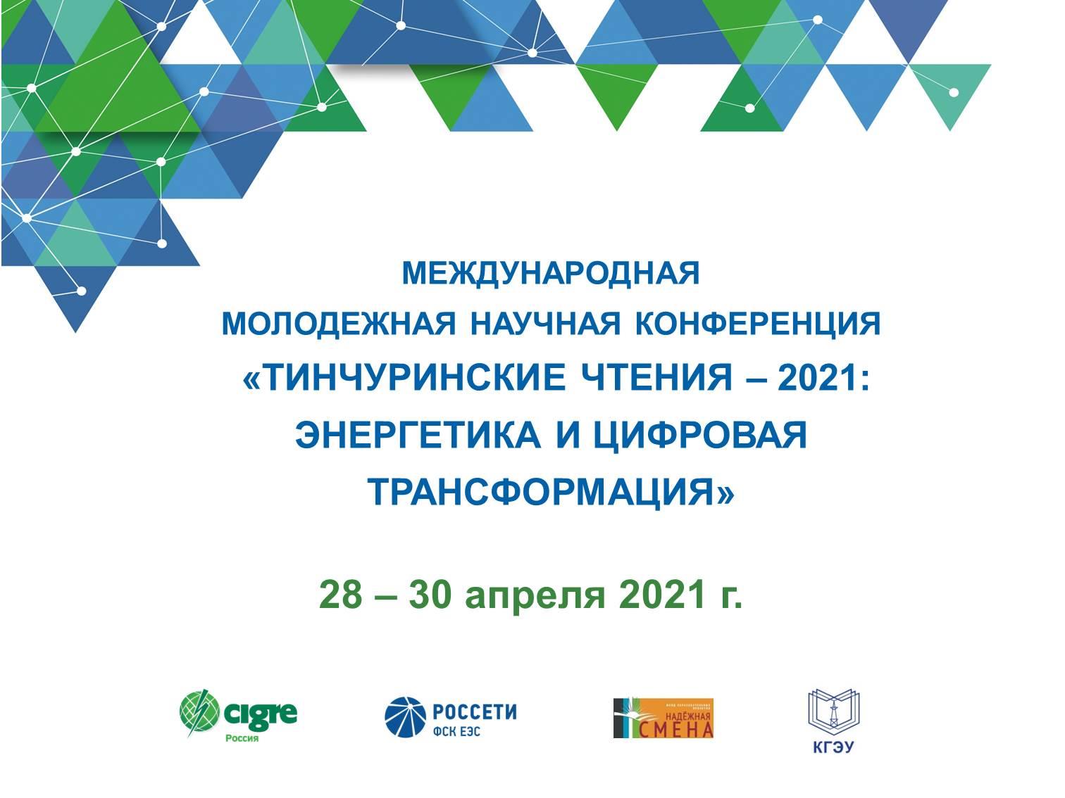 28 – 30 апреля 2021 года в Казанском государственном энергетическом университете проводится Международная молодежная научная конференция Тинчуринские чтения – 2021«Энергетика и цифровая трансформация»при поддержке Министерства науки и высшего образования РФ, Министерства промышленности и торговли РТ, Министерства экономики РТ и Благотворительного фонда «Надёжная смена».